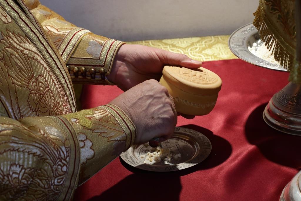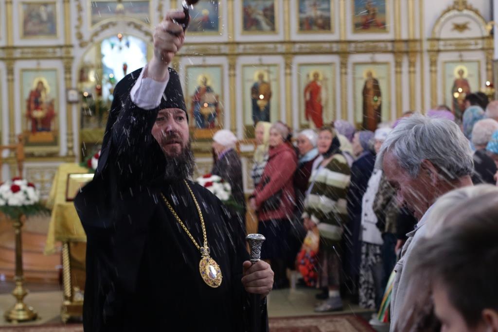 В завершение Божественной Литургии Преосвященнейший Архипастырь пожелал молящимся мира и спасения души и окропил прихожан святой водой.