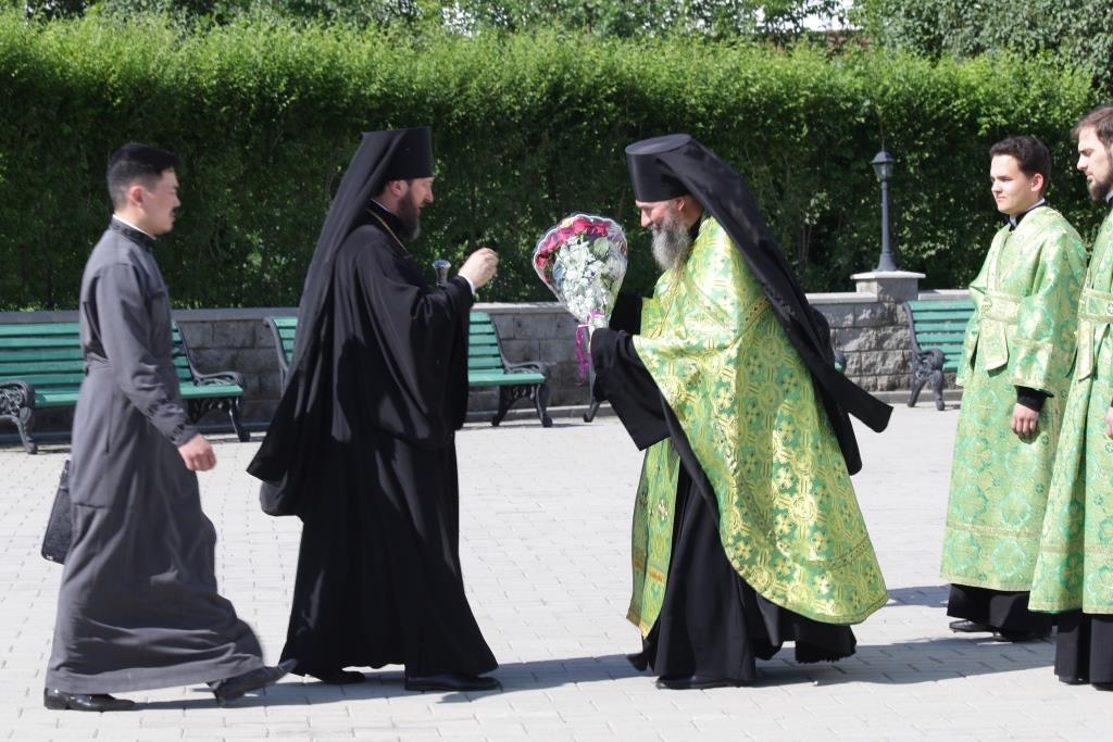 Архипастырю сослужили: ключарь Андреевского собора иеромонах Никодим (Авдеев), клирики собора иерей Алексий Клепиков, иерей Константин Дьяков, секретарь епархии диакон Илия Кван, протодиакон Георгий Засыпкин, протодиакон Андрей Дудник.