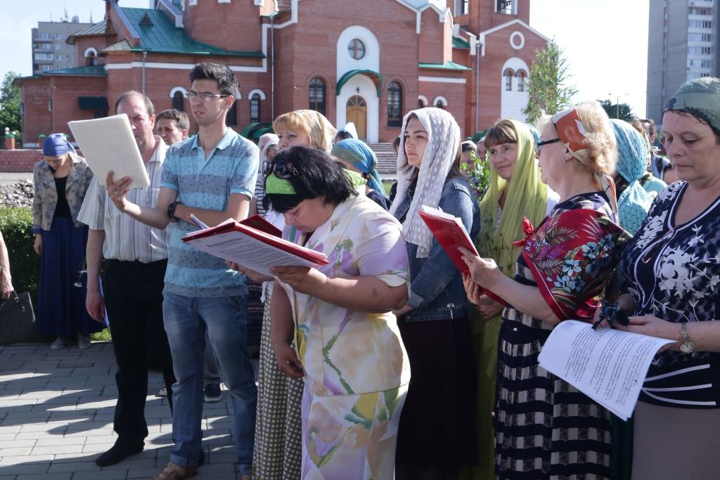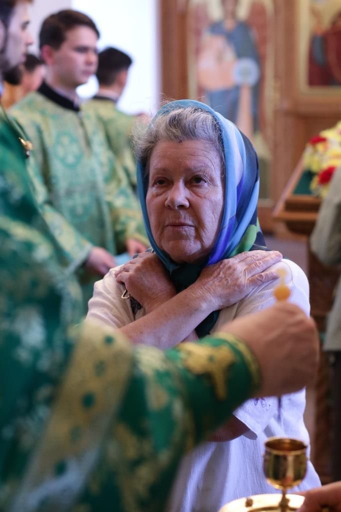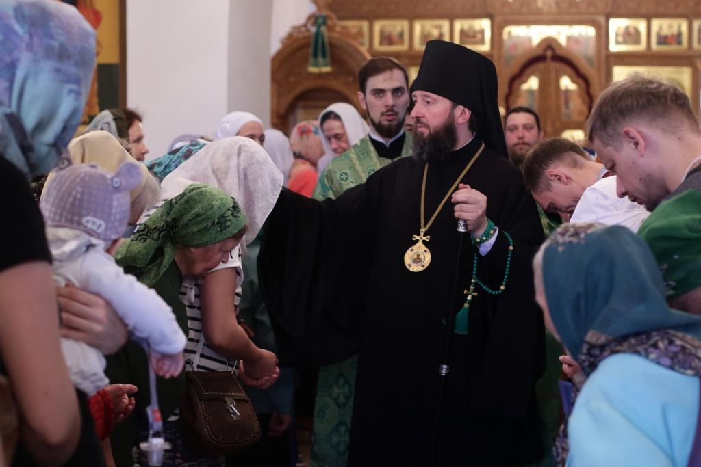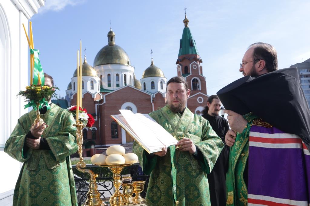 Праздничные песнопения исполнял хор Андреевского собора под управлением регента Н. Романцовой. Во время литии был совершен крестный ход вокруг Свято-Троицкого собора. После прочтения евангельского зачала Владыка епископ помазал духовенство и прихожан освященным елеем.