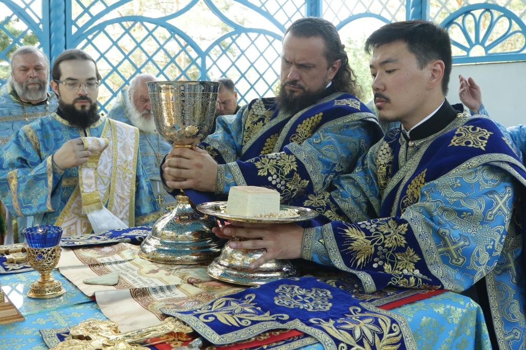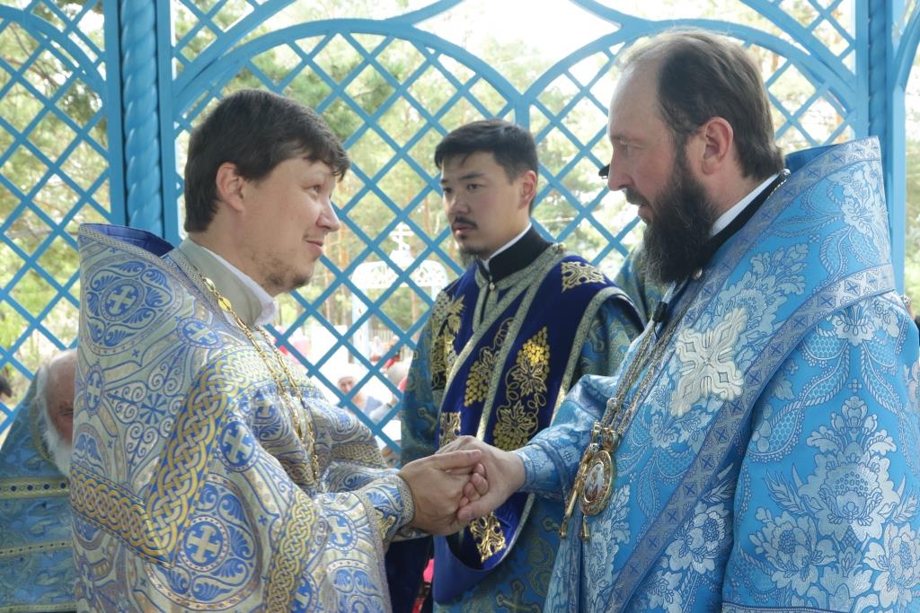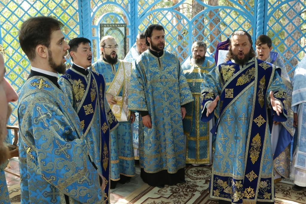Архипастырю сослужили: благочинный Семипалатинского церковного округа протоиерей Феодор Проскурин, благочинный Усть-Каменогорского церковного округа иерей Алексий Анищенко, духовенство Усть-Каменогорской и Семипалатинской епархии. Диаконский чин представляли секретарь епархии диакон Илия Кван, протодиакон Андрей Дудник, иеродиакон Афанасий (Козел).