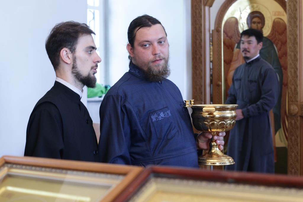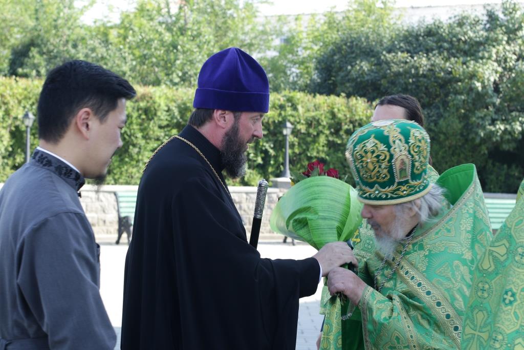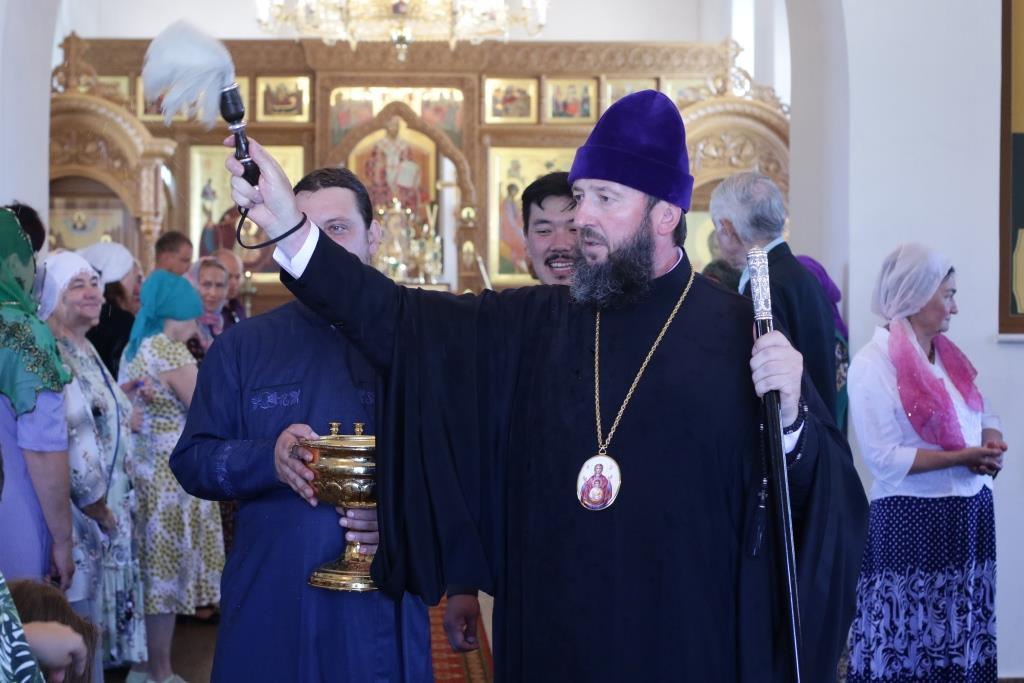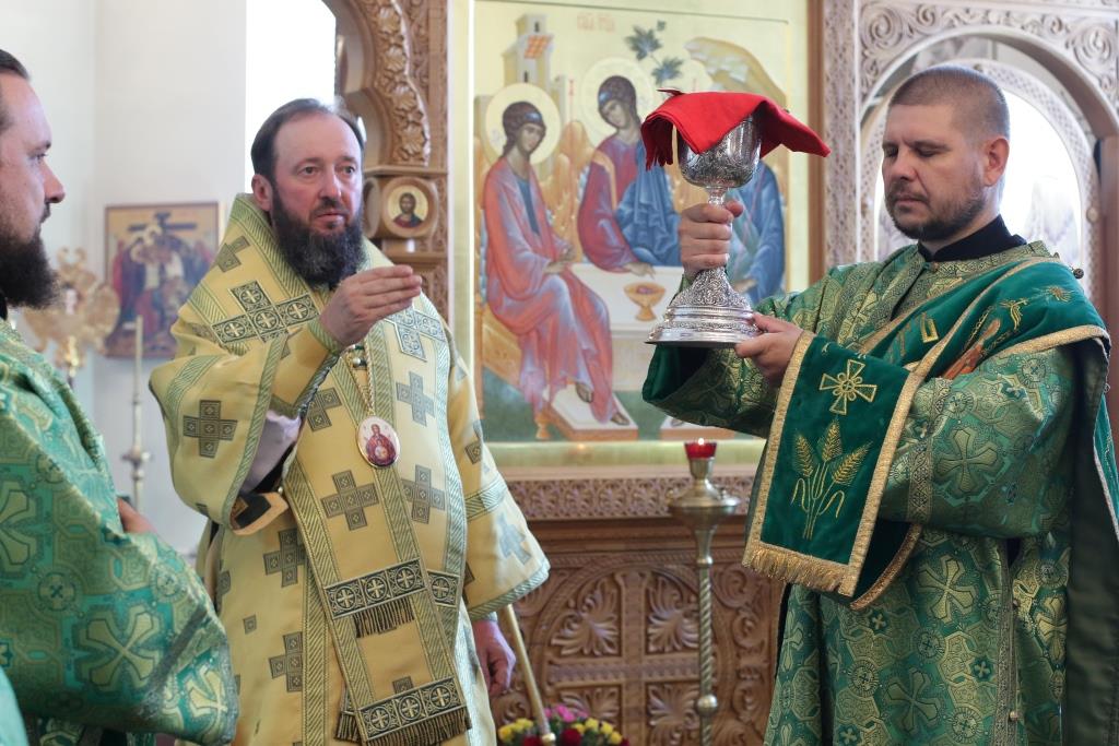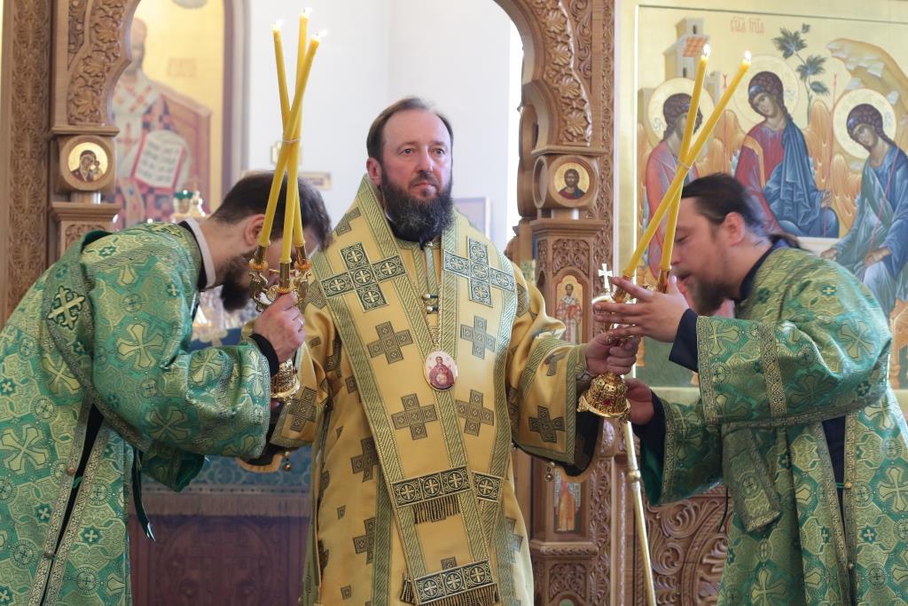 Управляющий Усть-Каменогорской и Семипалатинской епархией Преосвященнейший епископ Амфилохий возглавил служение Божественной Литургии иерейским чином в Свято-Троицком монастырском соборе города Усть-Каменогорска. Его Преосвященству сослужили: духовник епархии архимандрит Спиридон (Теплухин), ключарь Андреевского кафедрального собора иеромонах Никодим (Авдеев), секретарь епархии диакон Илия Кван, протодиакон Георгий Засыпкин, протодиакон Андрей Дудник, клирик Алматинской епархии диакон Димитрий Савченко.