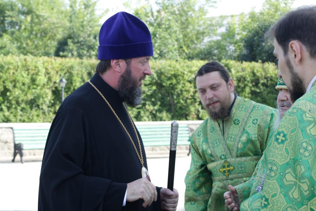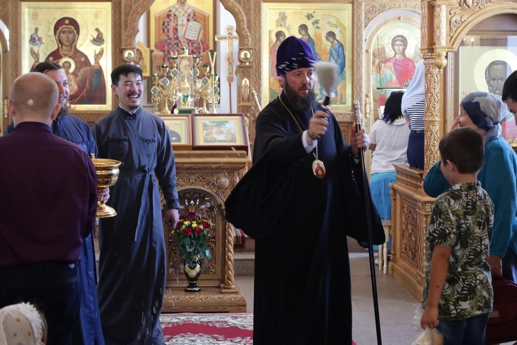 По окончании проповеди Преосвященнейший Архипастырь призвал Божие благословение на молящихся и окропил прихожан святой водой.