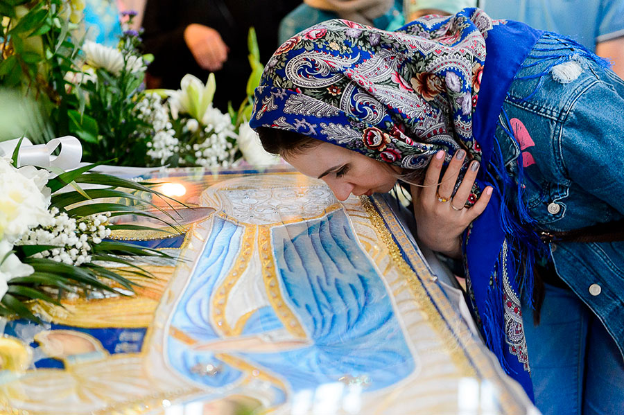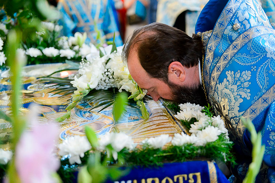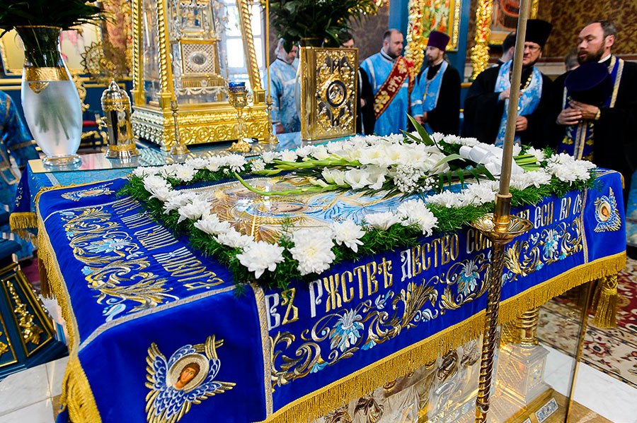 На престольных торжествах в соборе пребывает почитаемая святыня – ковчег с частью мощей блаженной Матроны Московской.