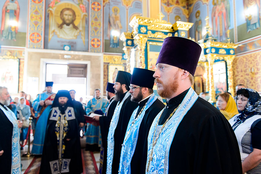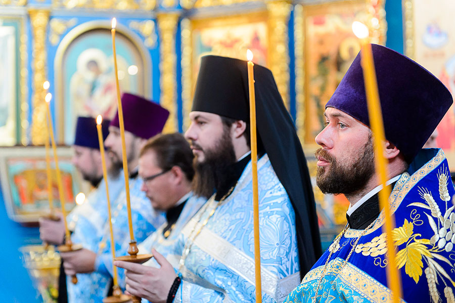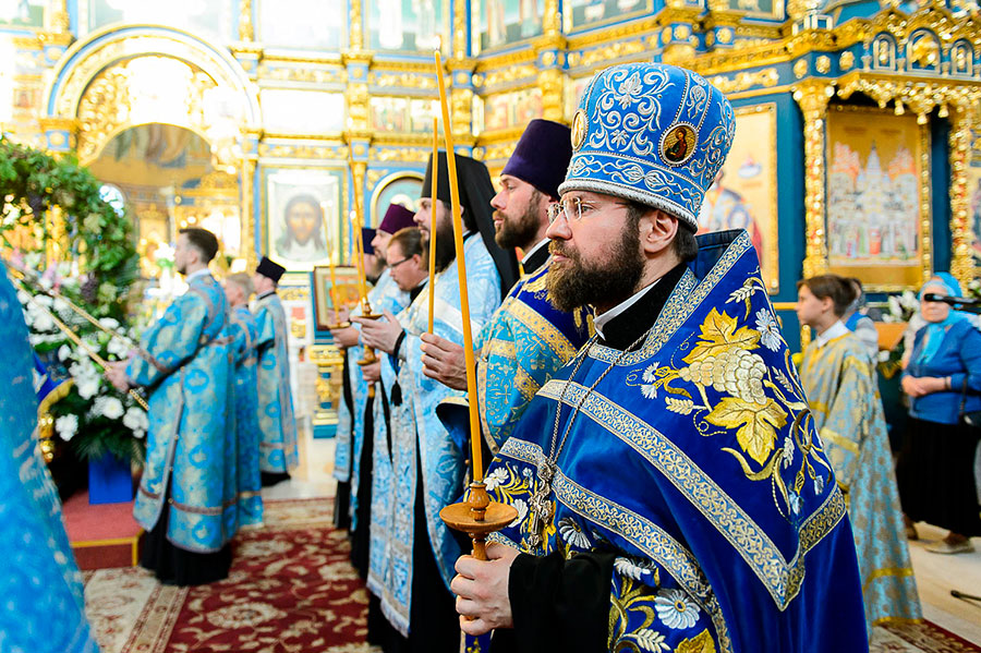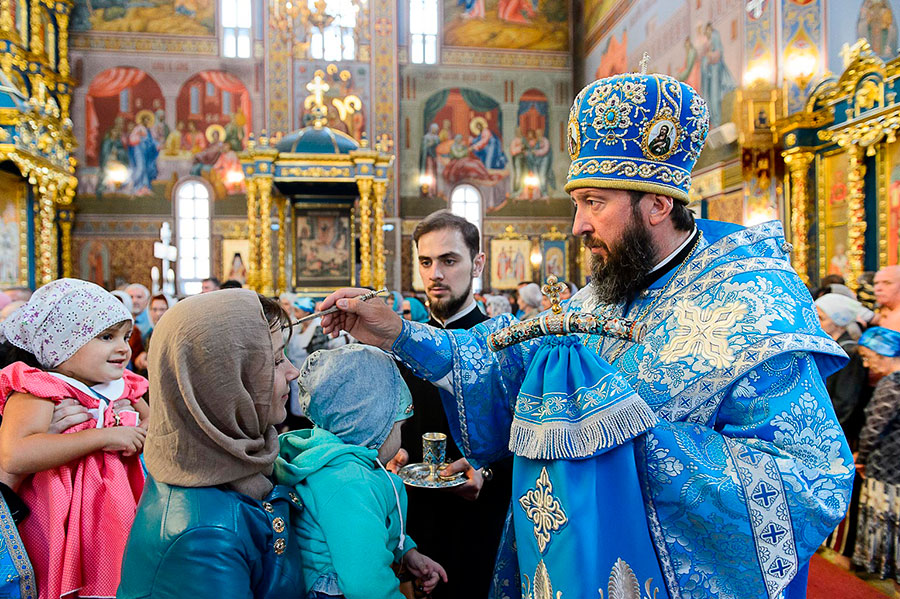 По прочтении евангельского зачала митрополит Александр поздравил собравшихся с наступающим праздником и помазал духовенство и верующих освященным елеем.