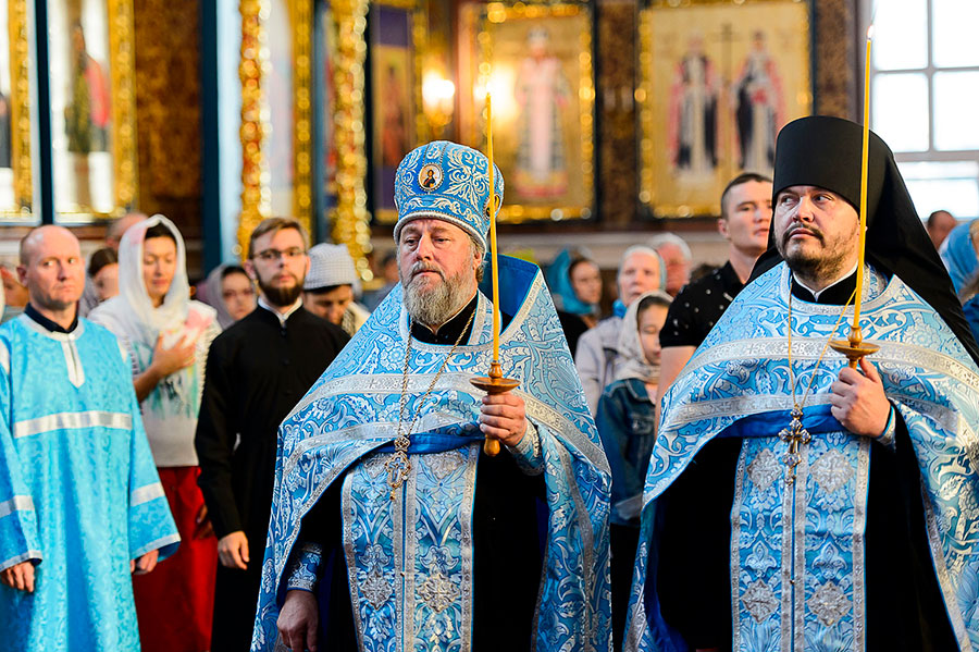 За всенощным бдением Предстоятелю Православной Церкви Казахстана сослужили: епископ Усть-Каменогорский и Семипалатинский Амфилохий, благочинный приходов Астаны архимандрит Сергий (Карамышев) и соборное духовенство.