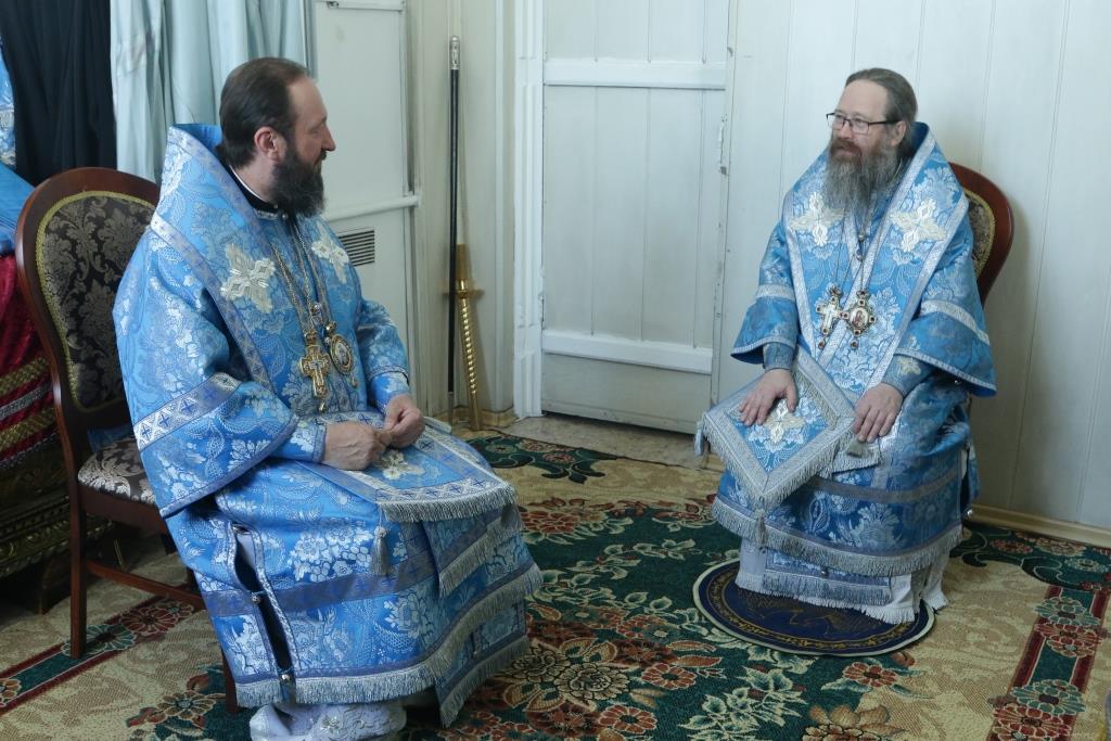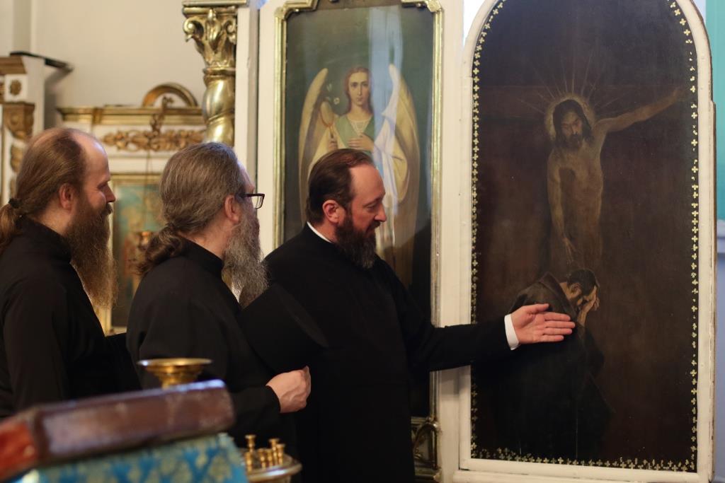 После богослужения архипастыри посетили воскресную школу и церковно-исторический музей при Воскресенском соборе, где ознакомились с экспозицией, посвященной становлению Православия на землях Рудного Алтая.