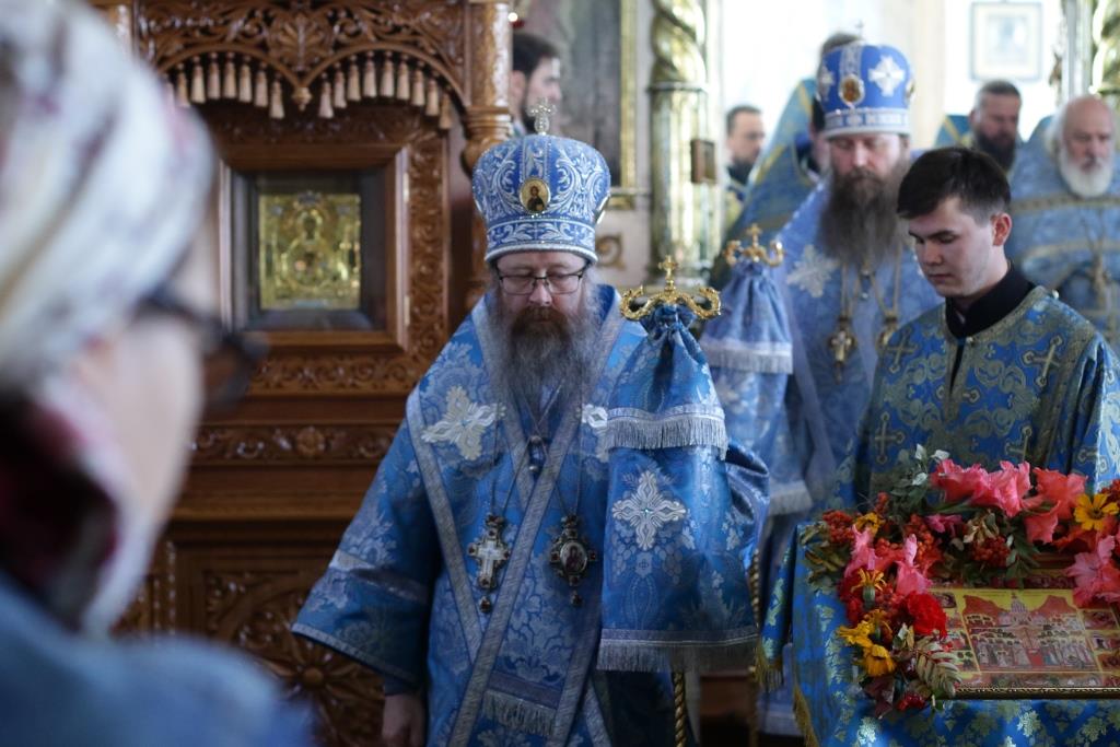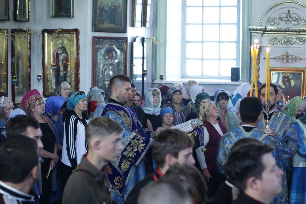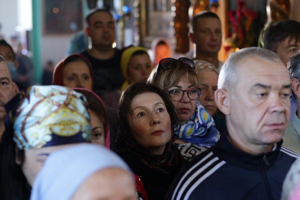 Праздничные песнопения исполнял хор Воскресенского собора под управлением регента Ю. Хохряковой. За богослужением молились: настоятельница Знаменско-Абалацкого женского монастыря игумения Марионилла (Помельникова) с сестрами обители, преподаватели и воспитанники приходской воскресной школы, прихожане Воскресенского собора, паломники с окрестных населенных пунктов. Перед причастием мирян проповедовал иерей Евгений Потылицын.