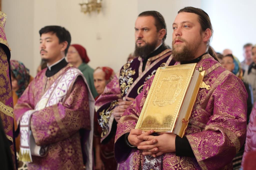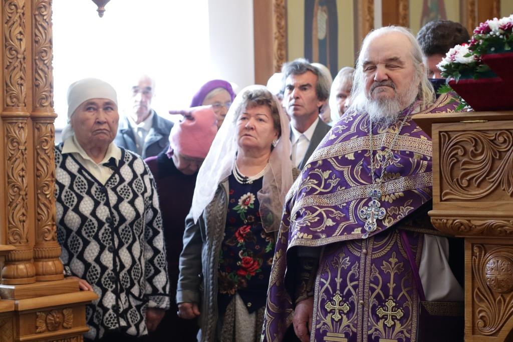 Песнопения праздника и Божественной Литургии исполнял хор кафедрального собора под управлением Н. Романцовой. За богослужением молились насельники Свято-Троицкого мужского монастыря города Усть-Каменогорска, прихожане главного храма Рудного Алтая, сотрудники епархиального управления. Перед причастием мирян проповедовал ключарь кафедрального собора.