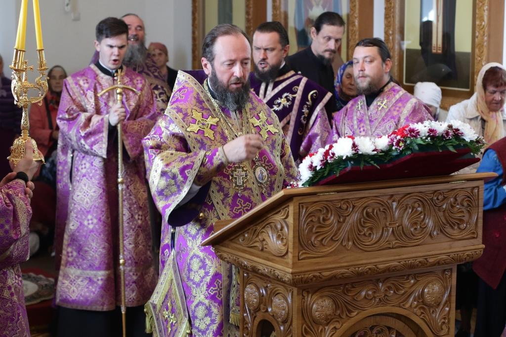 После окончания Божественной Литургии было совершено поклонение Честному Древу Креста Господня, после которого Архипастырь обратился к верующим со словом поучения.