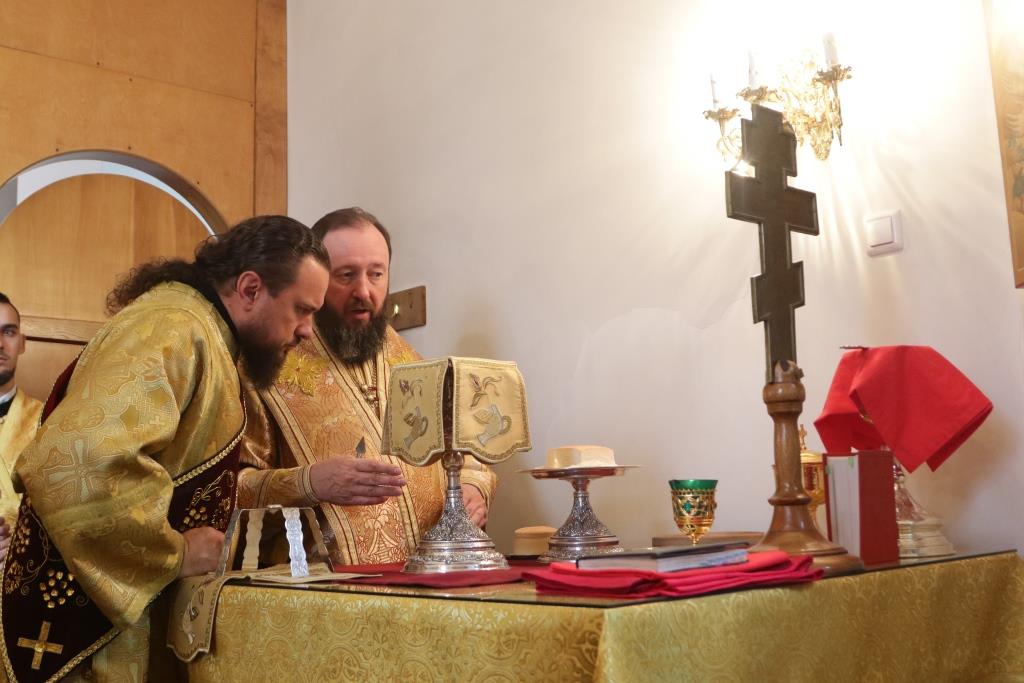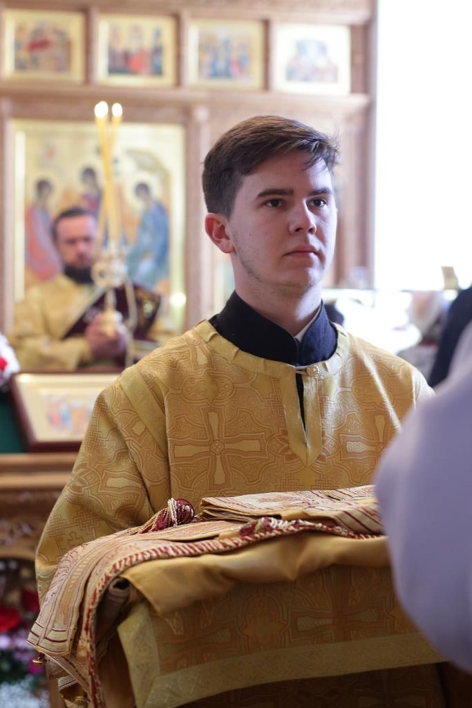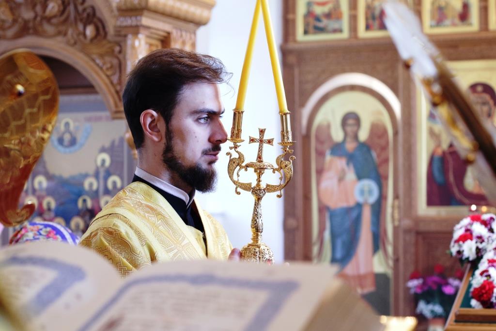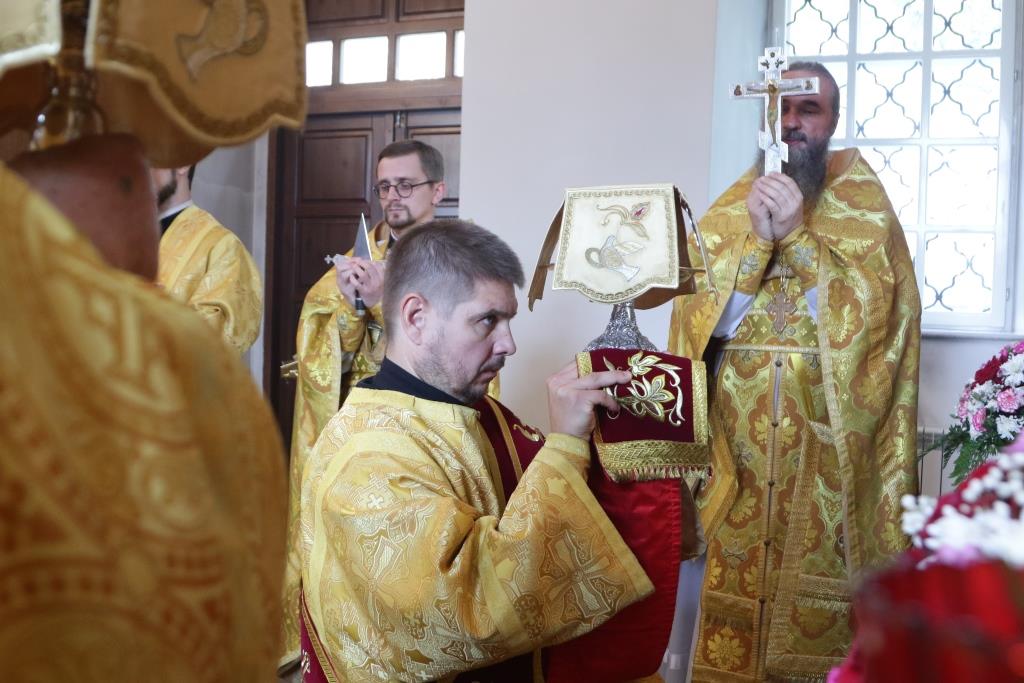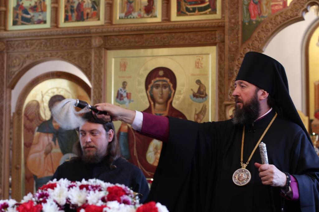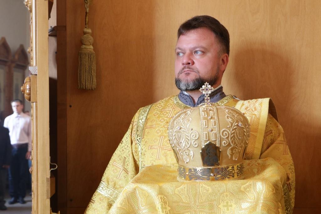 Его Преосвященству сослужили: духовник епархии архимандрит Спиридон (Теплухин), ключарь Андреевского кафедрального собора иеромонах Никодим (Авдеев), заведующий канцелярией епархии иерей Константин Дьяков, секретарь епархии диакон Илия Кван, протодиакон Георгий Засыпкин, протодиакон Андрей Дудник, диакон Владимир Лаврешин.