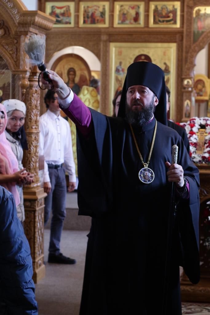 Преосвященнейший епископ Усть-Каменогорский и Семипалатинский Амфилохий возглавил служение Божественной литургии святителя Иоанна Златоуста в монастырском храме Святой Троицы города Усть-Каменогорска.