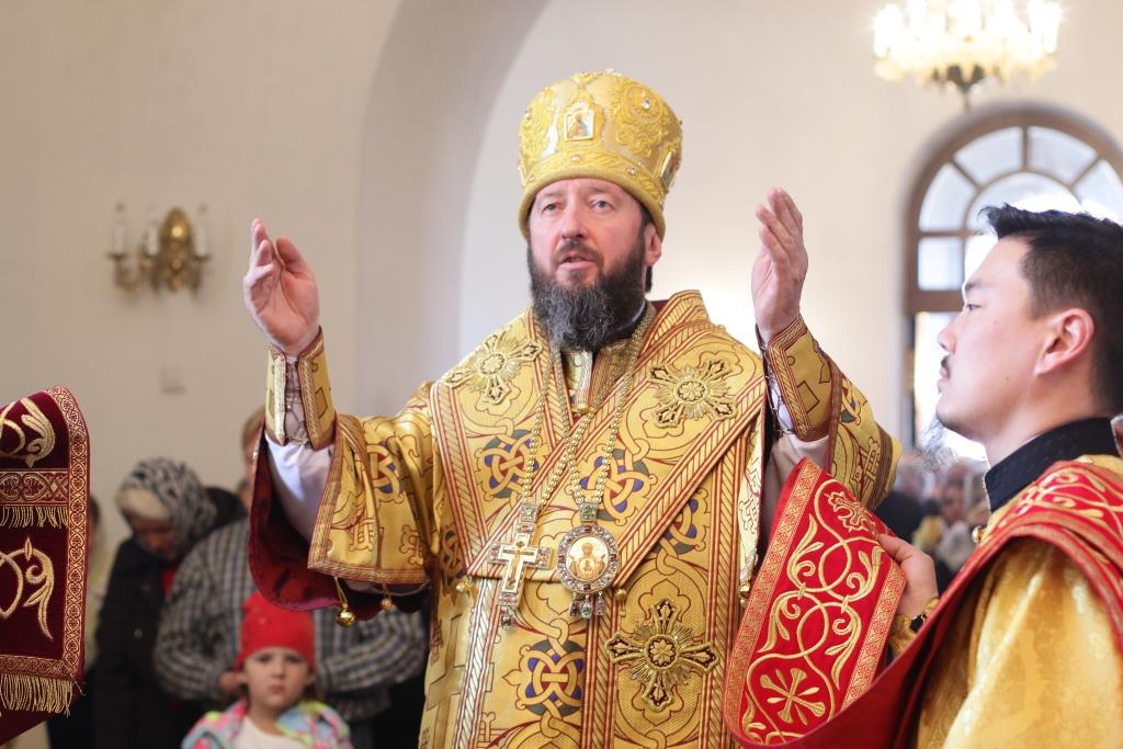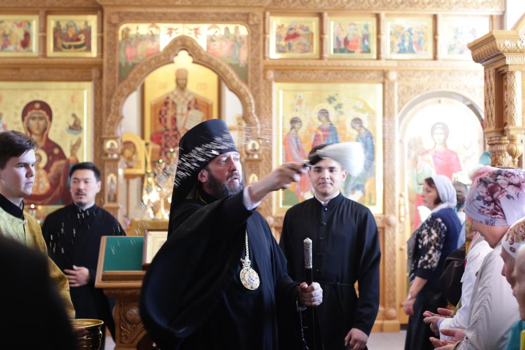 Преосвященнейший епископ Усть-Каменогорский и Семипалатинский Амфилохий совершил Божественную литургию святителя Иоанна Златоуста в храме во имя Святой Троицы города Усть-Каменогорска.