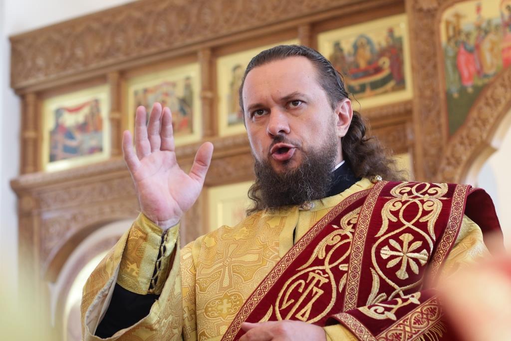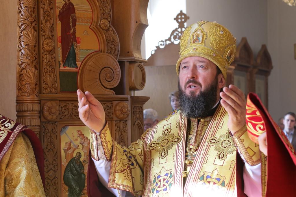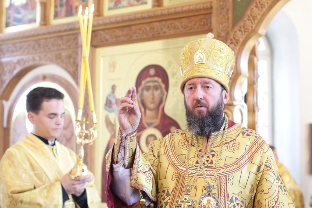 Проповедь перед Причастием произнёс ключарь кафедрального собора. По окончании Литургии епископ Амфилохий обратился к многочисленным верующим со словами проповеди: