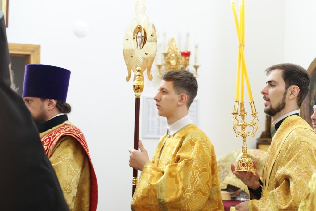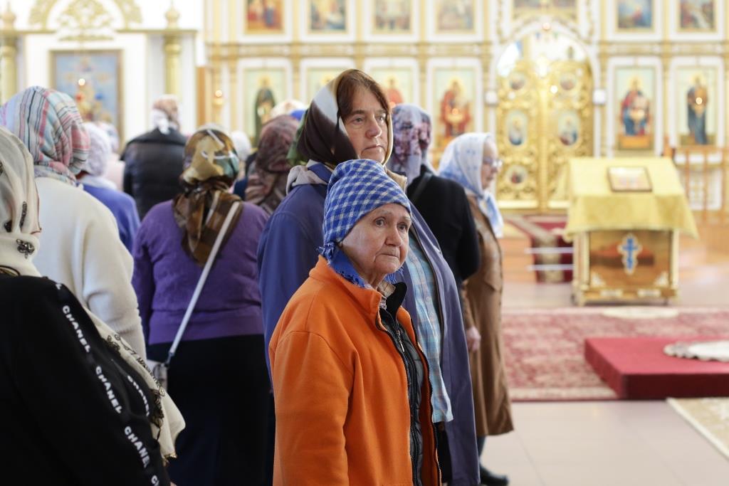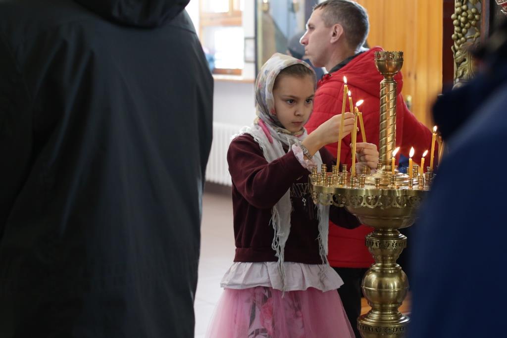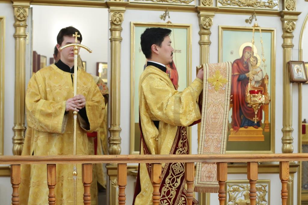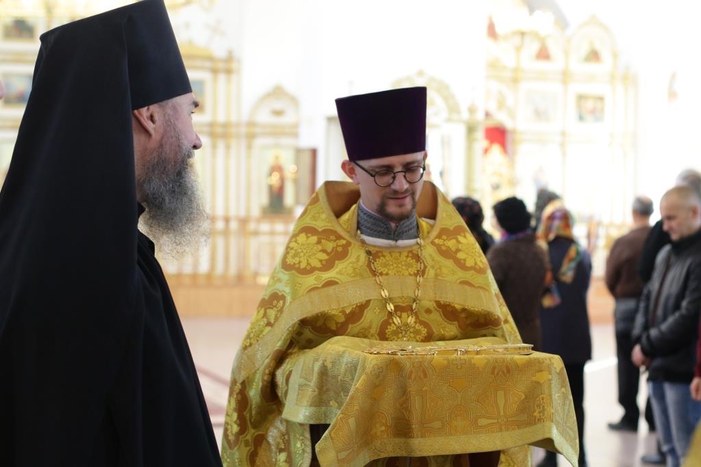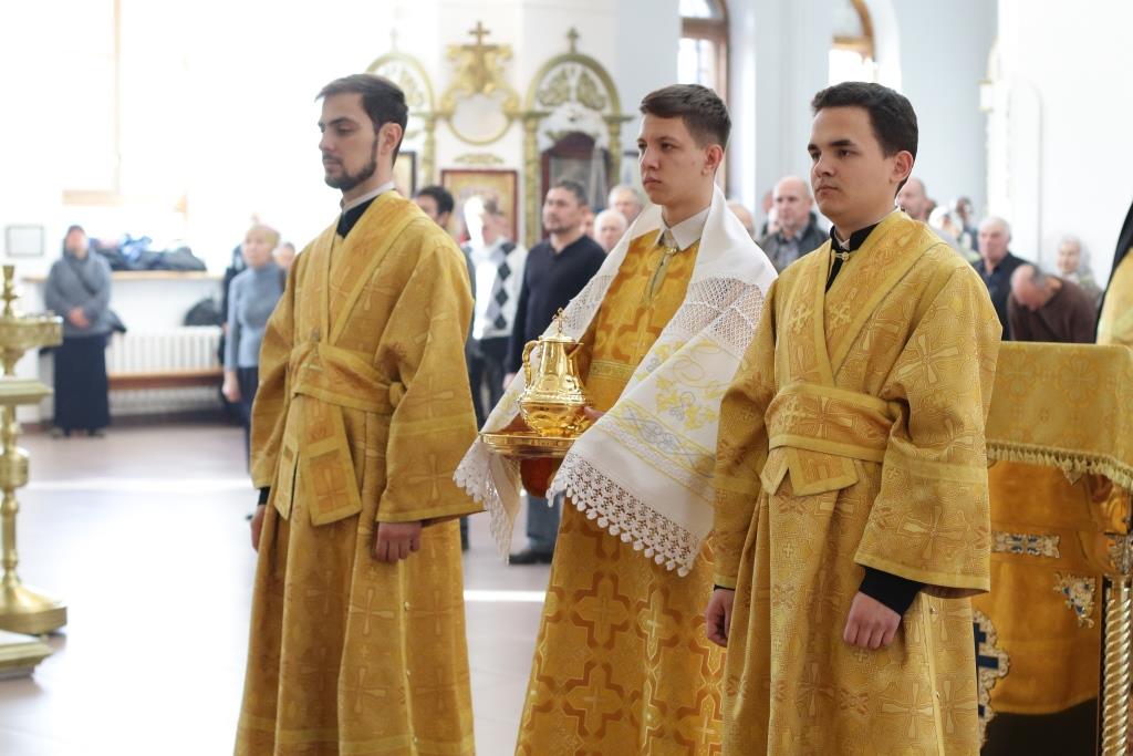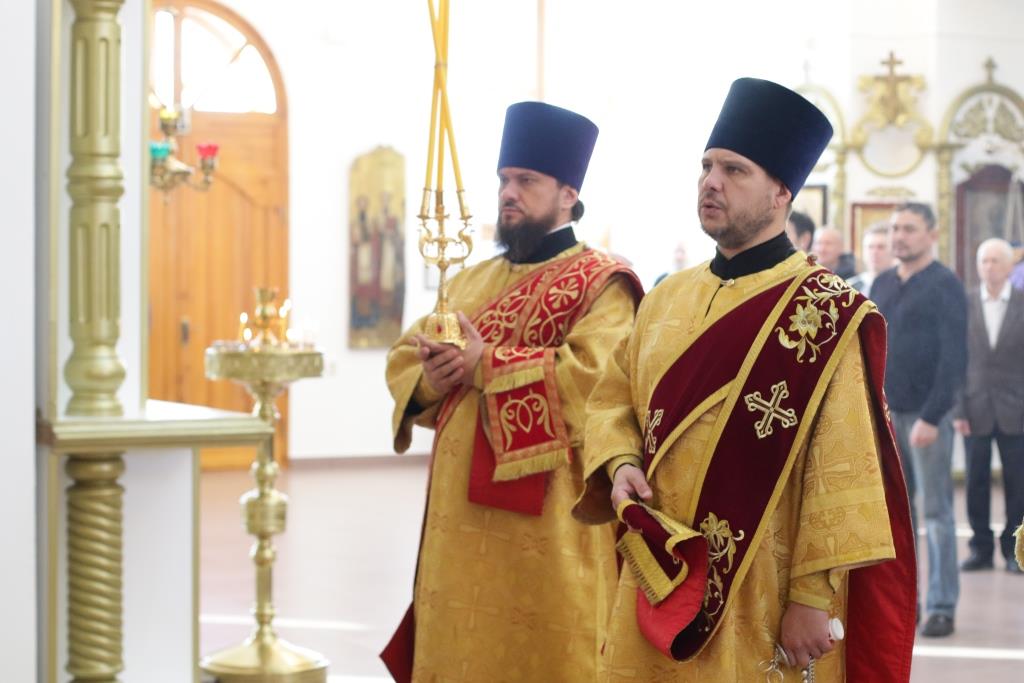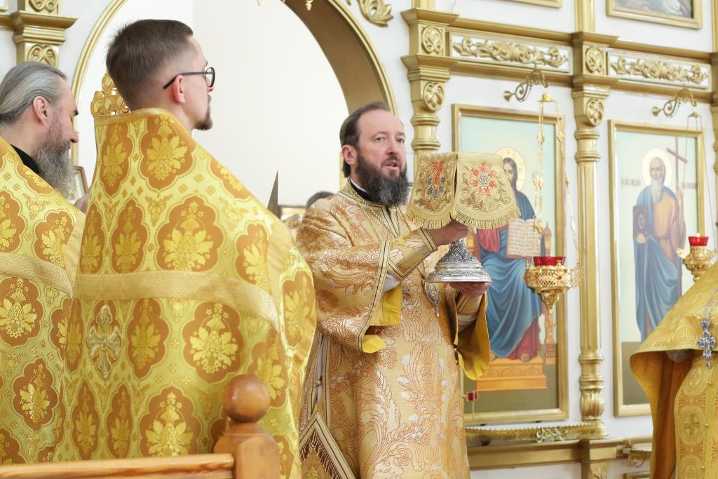 Песнопения Божественной Литургии и воскресного дня исполнял хор кафедрального собора под управлением регента Н.Романовой. За богослужением молились братия Свято-Троицкого мужского монастыря города Усть-Каменогорска, сотрудники епархиального управления и прихожане Андреевского собора. Перед причастием мирян проповедовал иеромонах Никодим (Авдеев).