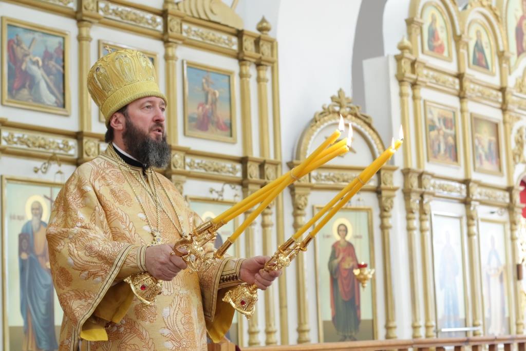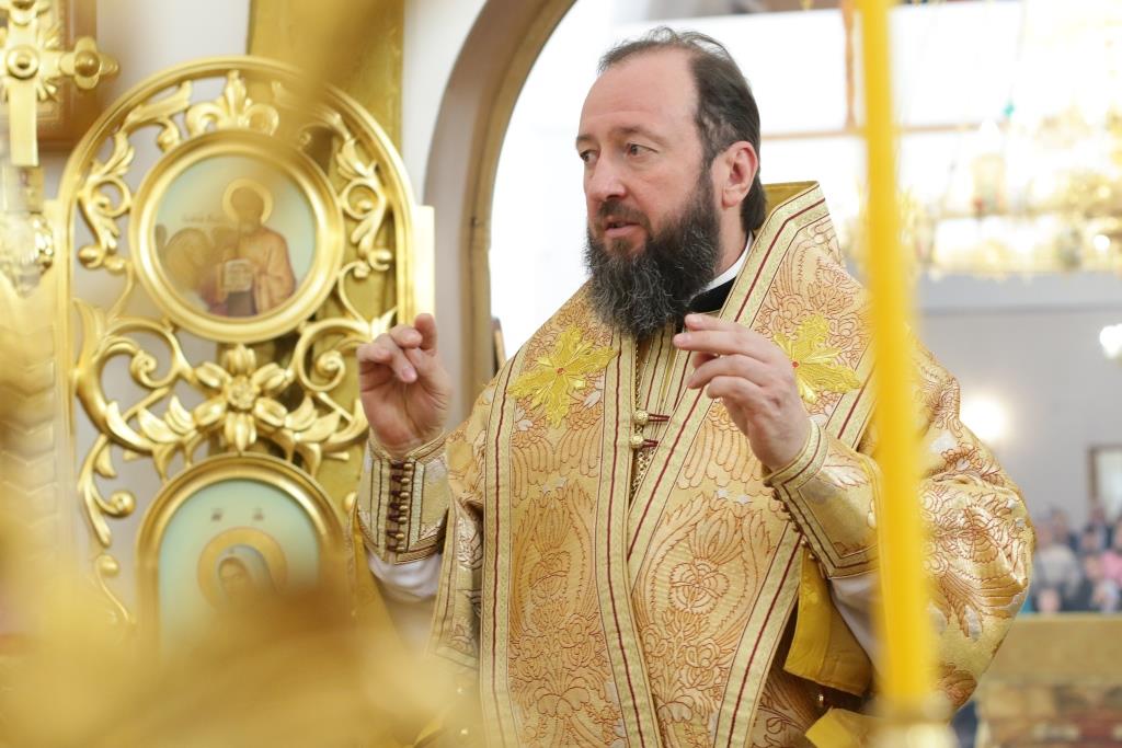 После отпуста Владыка епископ поздравил клириков и молящихся с праздником и обратился к прихожанам со словом архипастырской проповеди