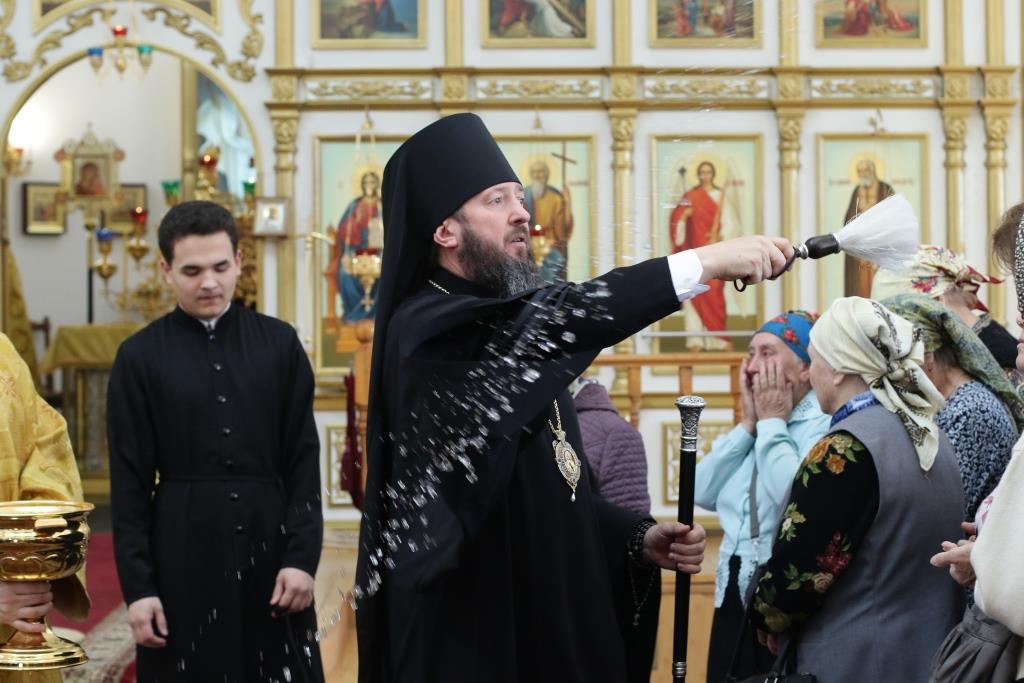 В завершение воскресного богослужения Преосвященнейший Владыка призвал благословение на молящихся и окропил народ Божий святой водой.