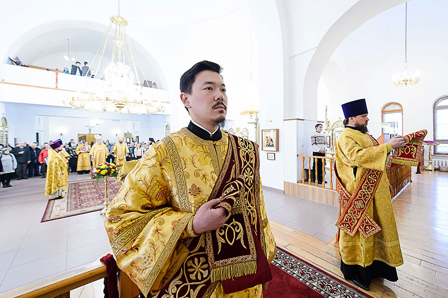 Предстоятелю Православной Церкви Казахстана сослужили: епископ Усть-Каменогорский и Семипалатинский Амфилохий, старейший клирик и духовник Усть-Каменогорской епархии архимандрит Спиридон (Теплухин), настоятель храма в честь иконы Божией Матери «Всех скорбящих Радость» города Алма-Аты протоиерей Евгений Воробьев, благочинный Усть-Каменогорского церковного округа иерей Алексий Анищенко, референт Алма-Атинского епархиального управления иеромонах Геннадий (Бурдюжа), ключарь кафедрального собора иеромонах Никодим (Авдеев), руководитель личного секретариата митрополита иеромонах Прохор (Ендовицкий), протодиакон Георгий Засыпкин, секретарь Усть-Каменогорской епархии диакон Илия Кван, клирики Вознесенского кафедрального собора Алма-Аты – протодиакон Владимир Сыровацкий и диакон Димитрий Савченко; духовенство Усть-Каменогорской епархии.