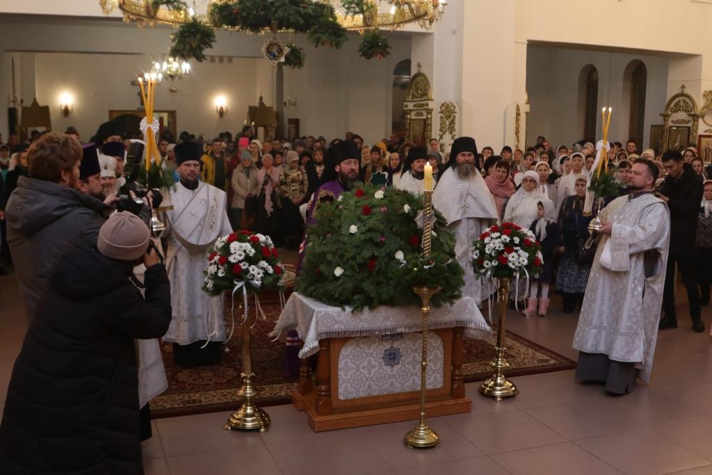 За праздничным Богослужением молились многочисленные жители Усть-Каменогорска и близлежащих населённых пунктов, сотрудники епархиального управления, преподаватели и воспитанники Центральной воскресной школы, насельники Свято-Троицкого мужского монастыря. Песнопения Божественной Литургии исполняли хор кафедрального собора под управлением регента Н. Романцовой. Множество православных христиан причастилось Святых Христовых Таин в святую ночь Рождества.