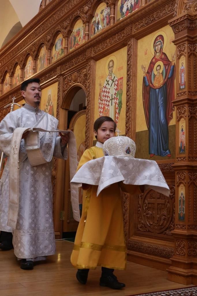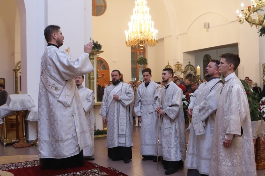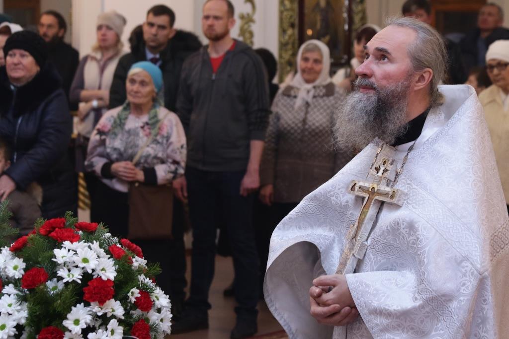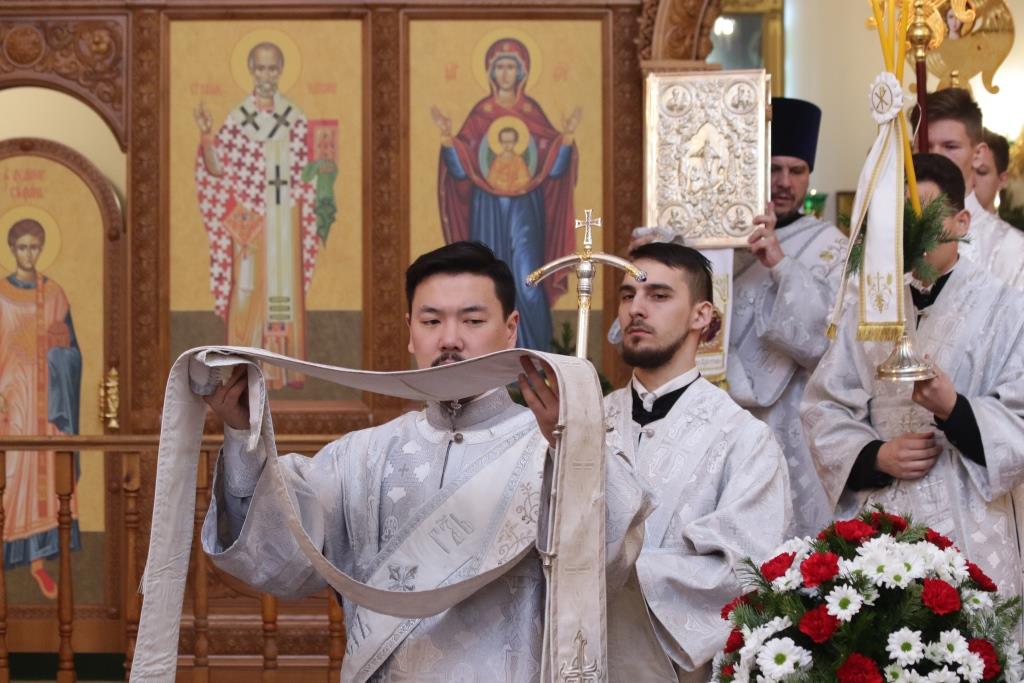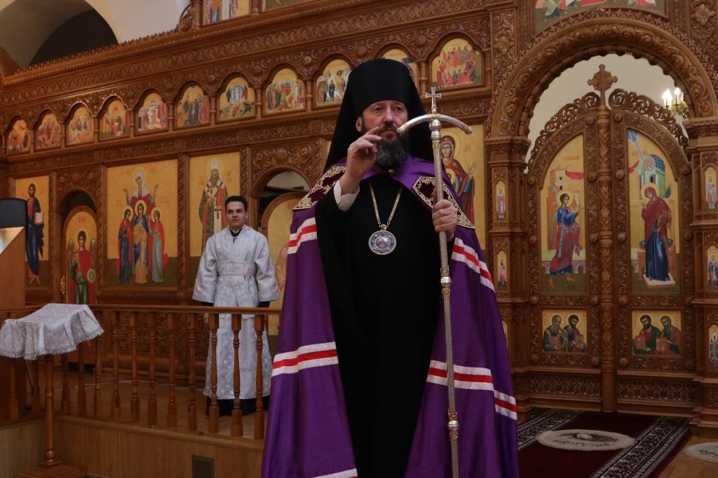 Владыке епископу сослужили духовник епархии архимандрит Спиридон (Теплухин), ключарь Андреевского собора иеромонах Никодим (Авдеев), клирик собора иерей Алексий Клепиков, секретарь Управляющего епархией иеромонах Силуан (Магилев), иеромонах Назарий (Шелыгин), секретарь епархии диакон Илия Кван, протодиакон Георгий Засыпкин, протодиакон Андрей Дудник, диакон Владимир Лаврешин.