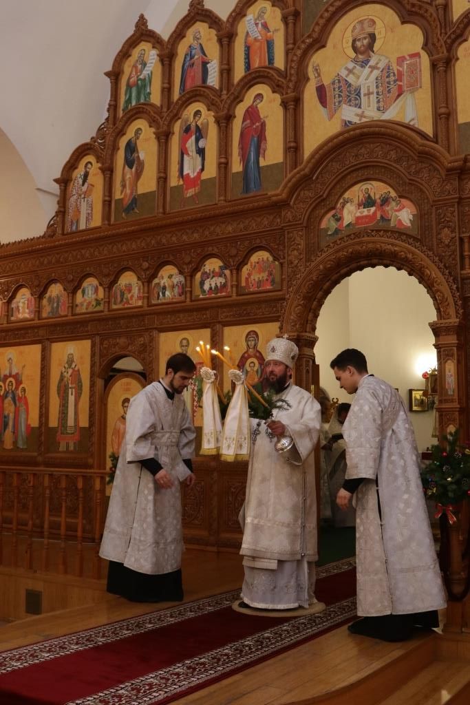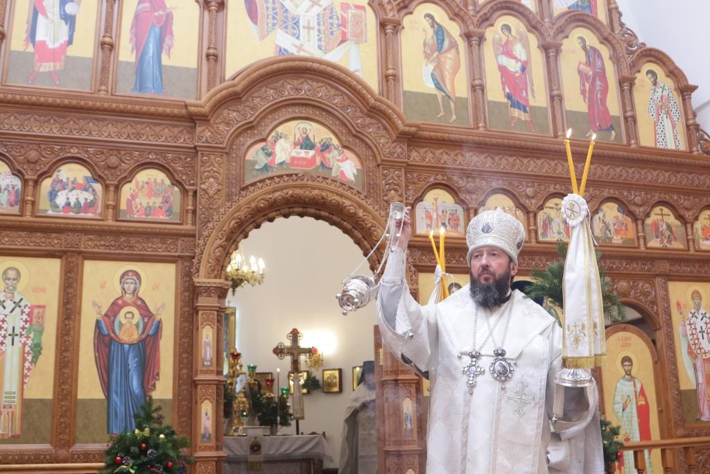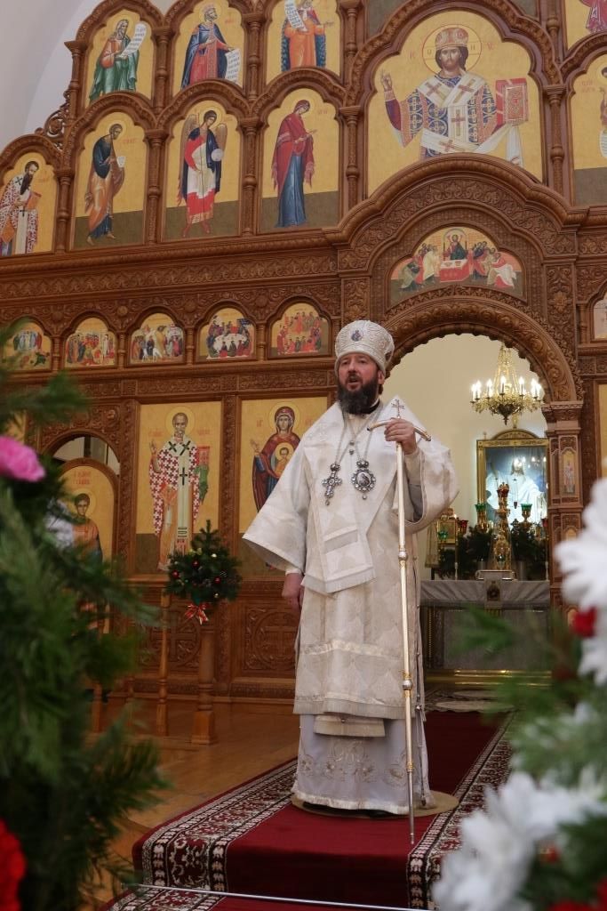 Божественная Литургия завершилась славлением Богомладенцу Христу, после которого Преосвященнейший Архипастырь обратился к молящимся со словами проповеди: