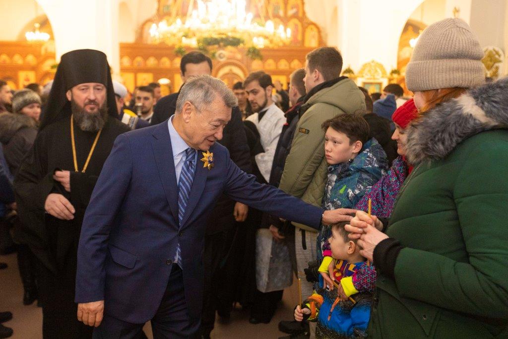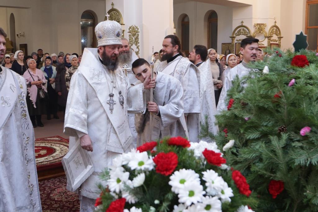 В праздничную ночь Рождества Христова епископ Усть-Каменогорский и Семипалатинский Амфилохий совершил Божественную Литургию святителя Иоанна Златоуста в кафедральном соборе во имя святого апостола Андрея Первозванного города Усть-Каменогорска.