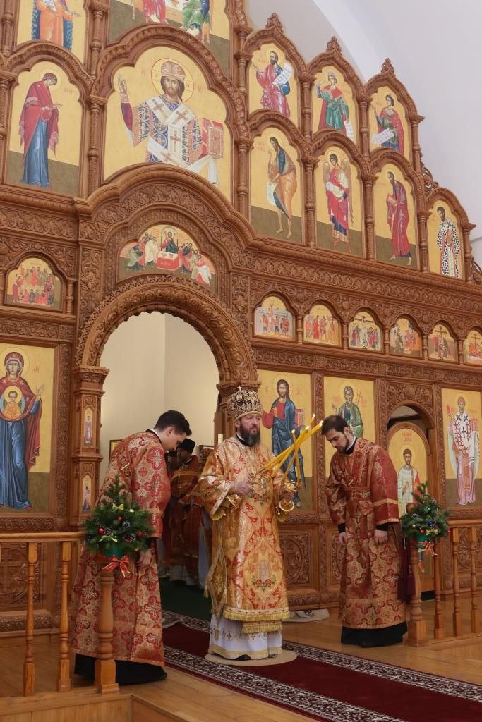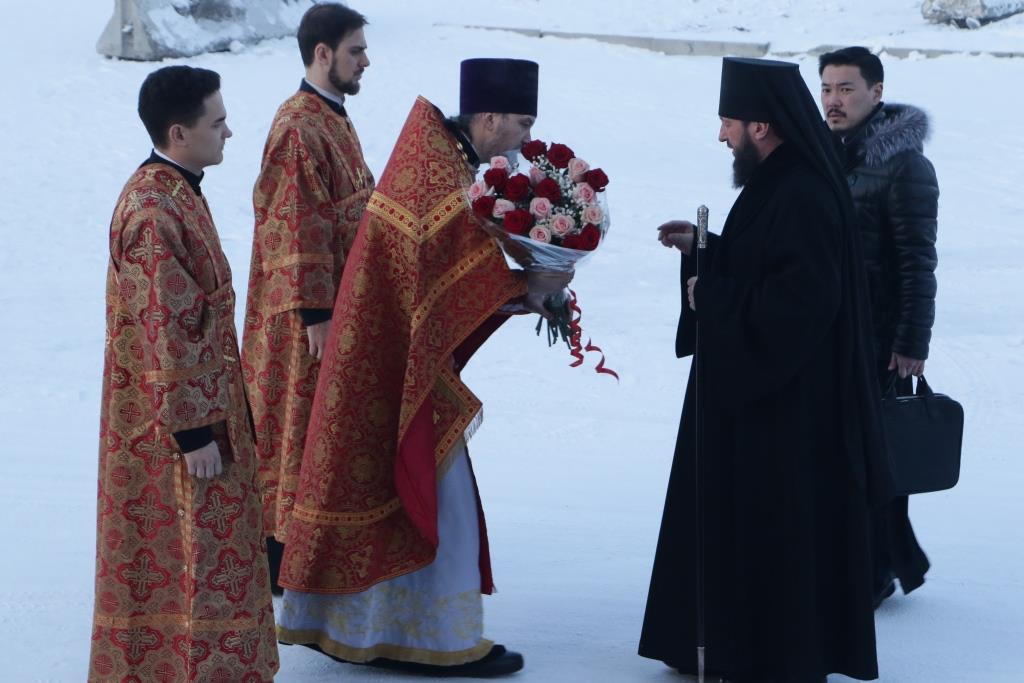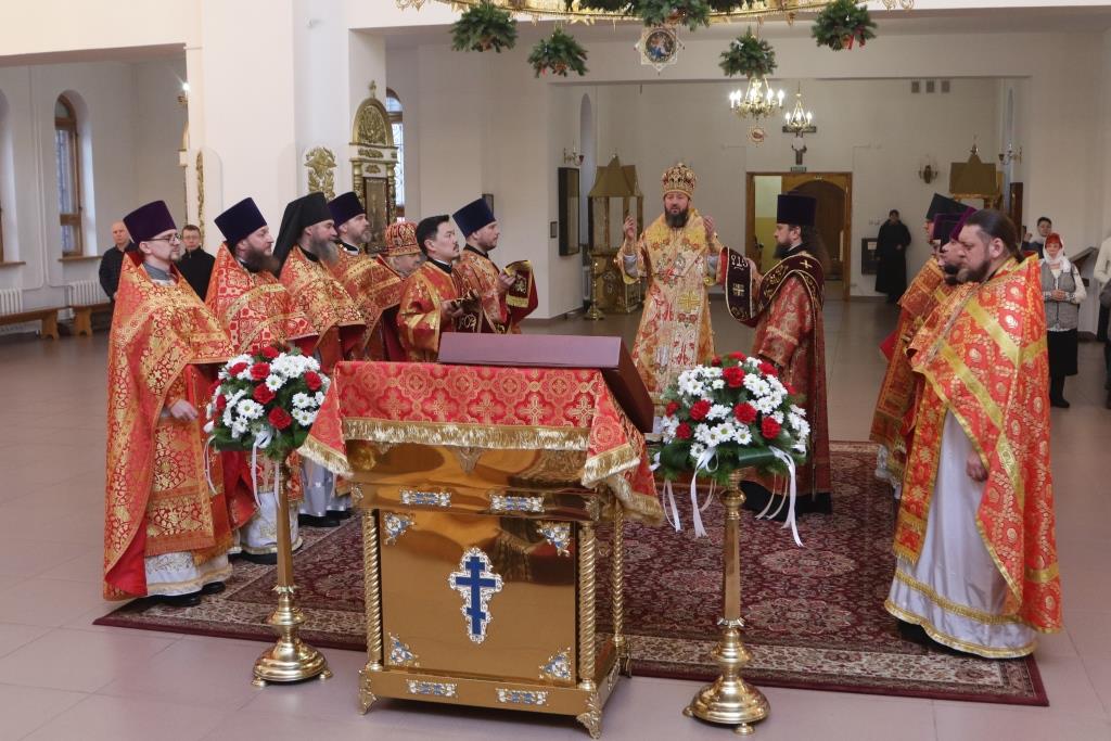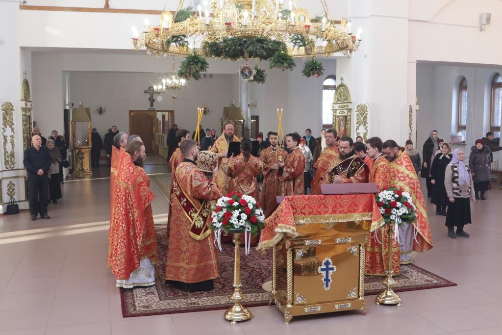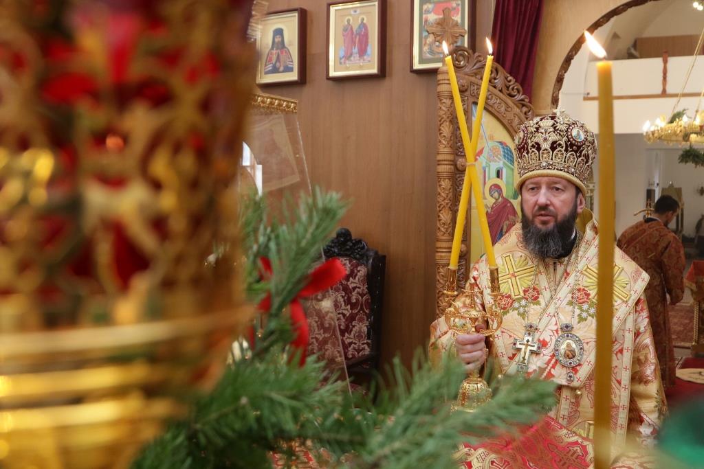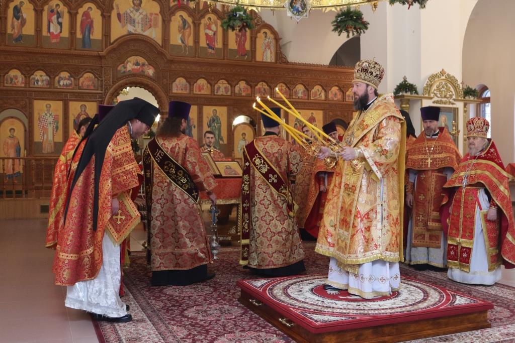В завершение Литургии состоялось славление Рождеству Христову и Собору новомучеников и исповедников Восточно-Казахстанских, после которого епископ Амфилохий вознёс молитву «святым подвижникам, в земле нашей прославленным».