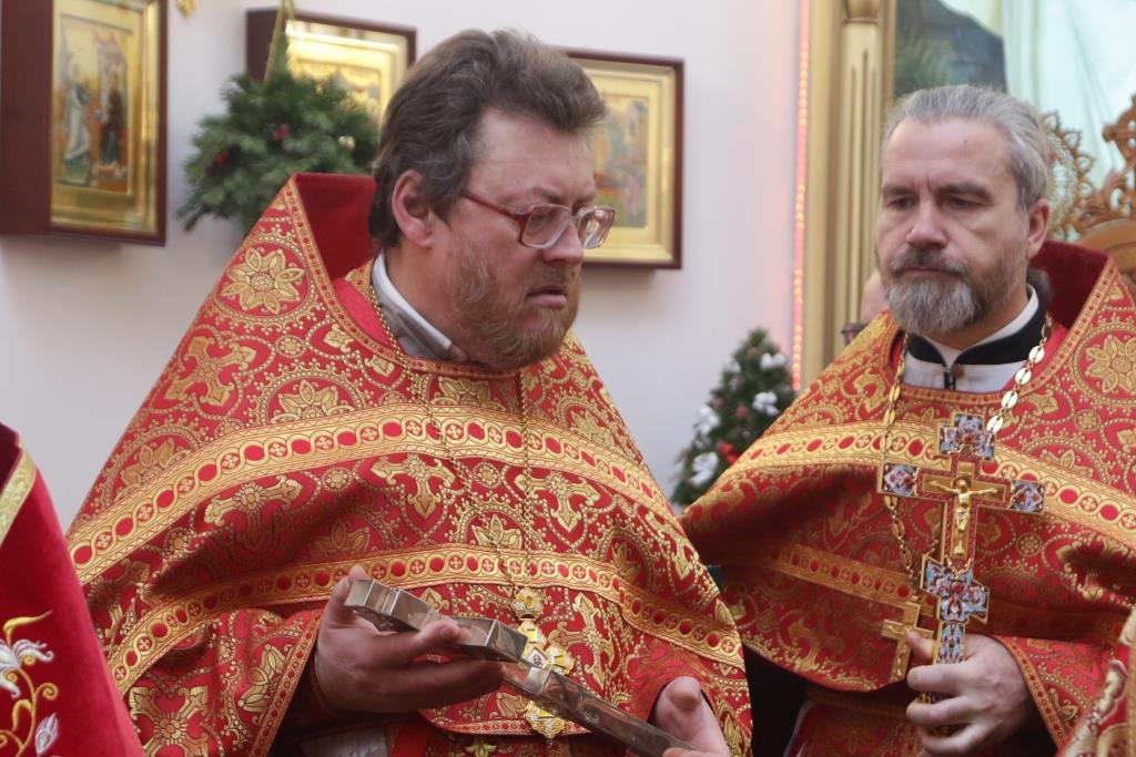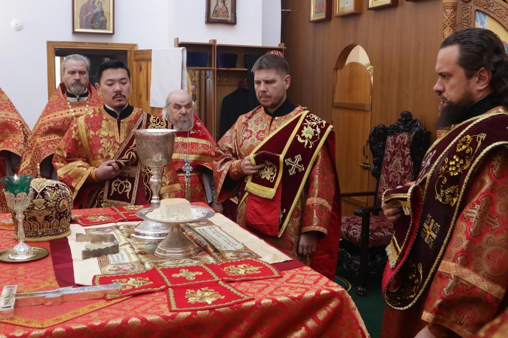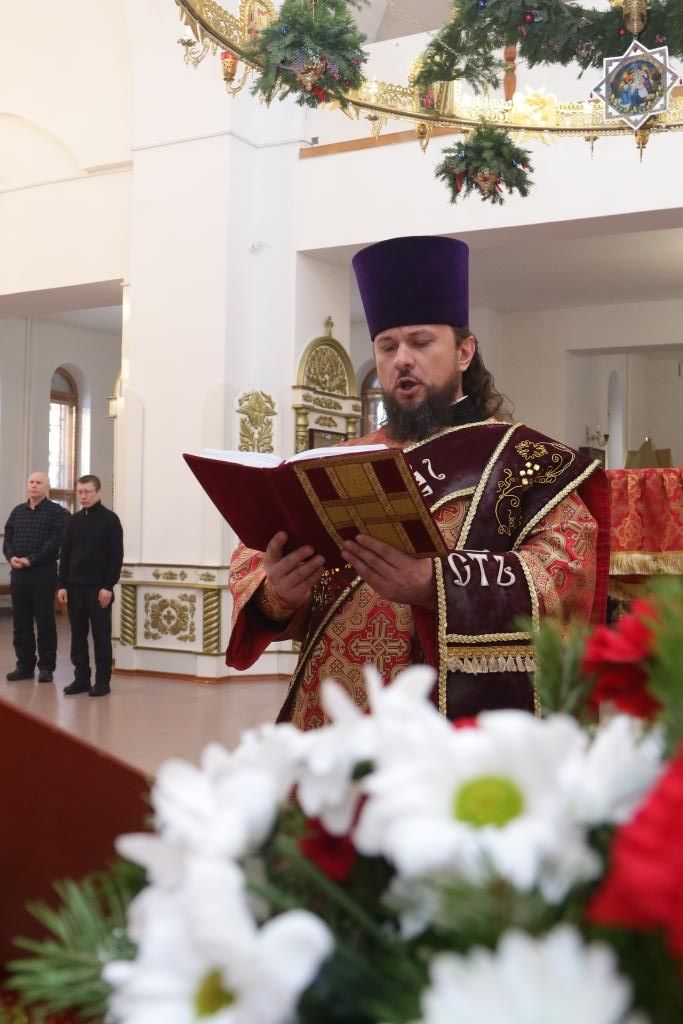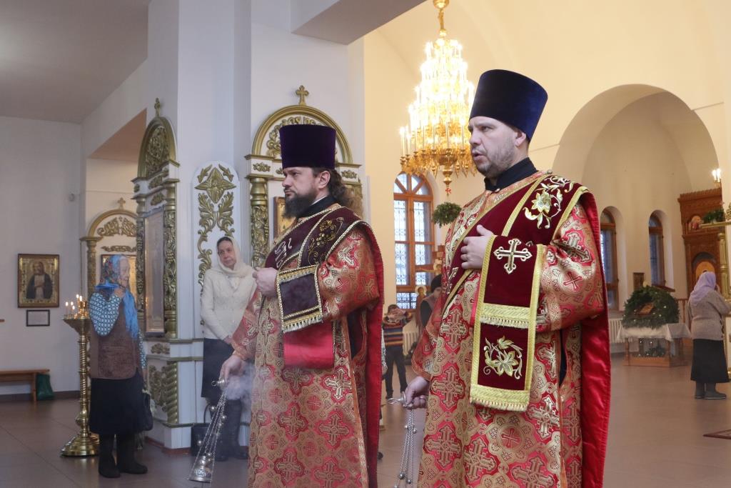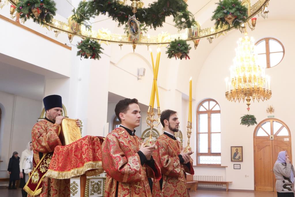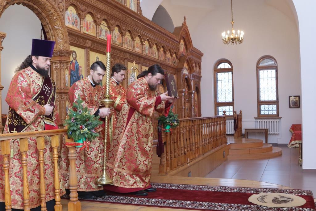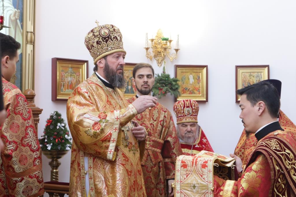Владыке епископу сослужили: духовник епархии архимандрит Спиридон (Теплухин), благочинный Усть-Каменогорского церковного округа иерей Алексий Анищенко, клирик Покровского храма Усть-Каменогорска иеромонах Иустин (Ларионов), ключарь Андреевского собора иеромонах Никодим (Авдеев), настоятель Трехсвятительского храма поселка Глубокое иерей Константин Акентьев, настоятель Богородице-Рождественского храма города Усть-Каменогорска протоиерей Евгений Яганов, настоятель Зиновьевского храма иерей Вячеслав Гутов, секретарь Управляющего Усть-Каменогорской епархией иеромонах Силуан (Магилев), заведующий канцелярией Усть-Каменогорского епархиального управления иерей Константин Дьяков, настоятель Серафимовского храма поселка Белоусовка иерей Георгий Гуцалов; секретарь епархии диакон Илия Кван, протодиаконы Георгий Засыпкин и Андрей Дудник. Песнопения субботы по Рождестве Христовом и праздника Новомучеников Восточно-Казахстанских исполнял хор Андреевского собора под управлением регента Н. Романцовой.