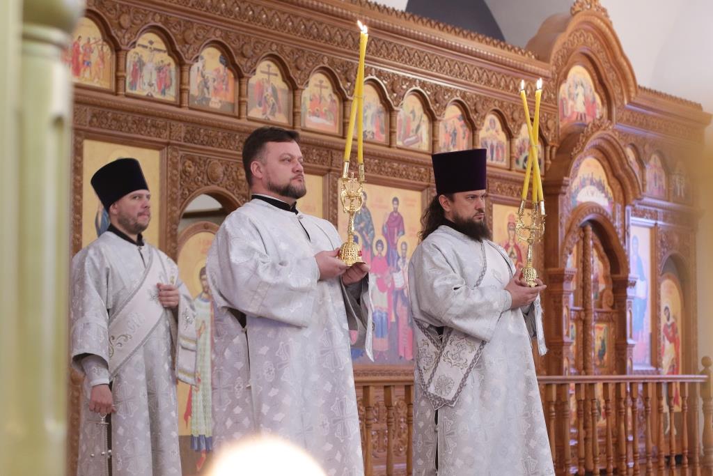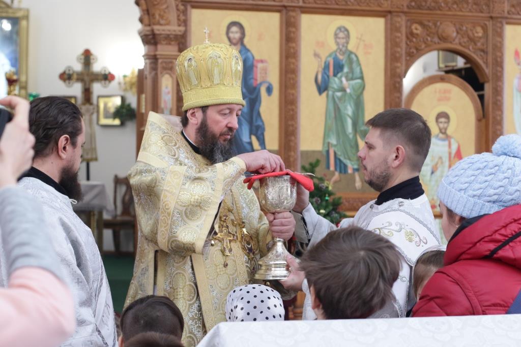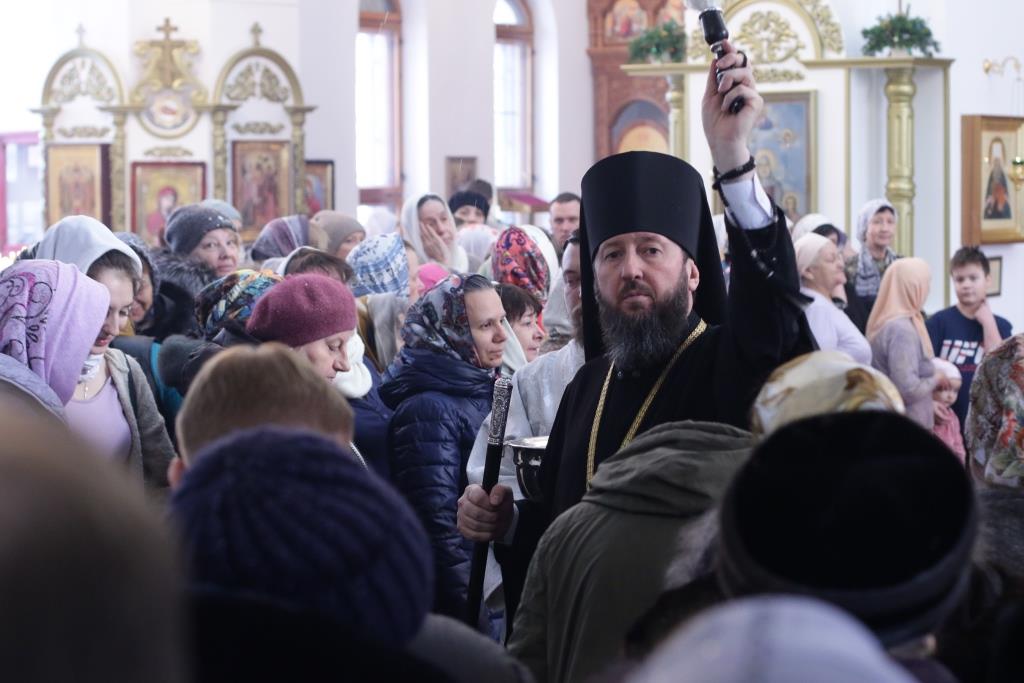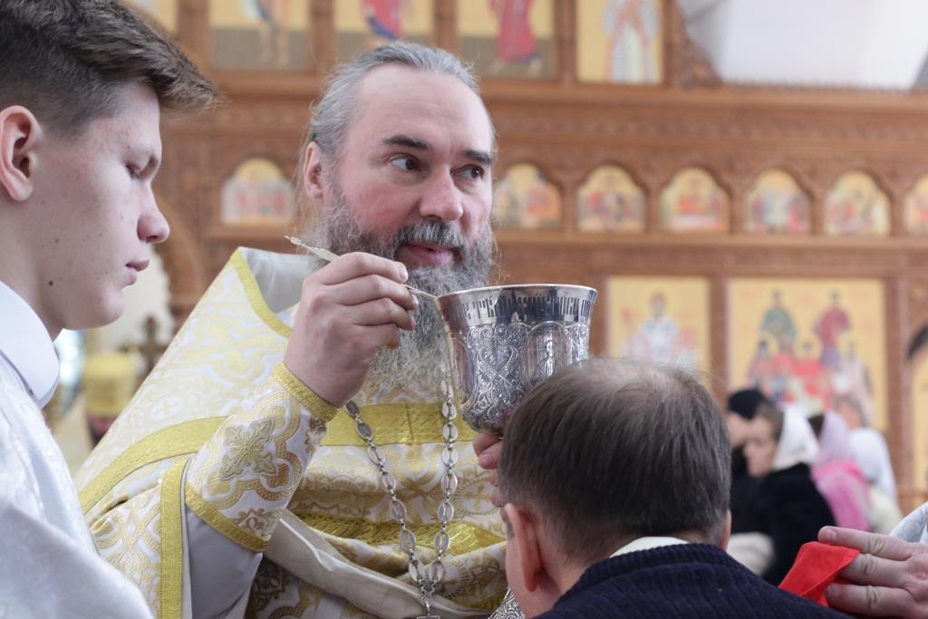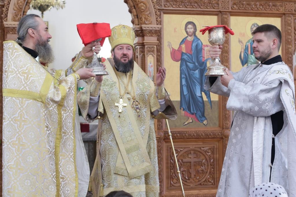 Перед причастием мирян проповедовал священник Константин Дьяков. После завершения воскресной Литургии Преосвященнейший епископ Амфилохий поздравил молящихся с праздником и обратился к прихожанам со словами проповеди.