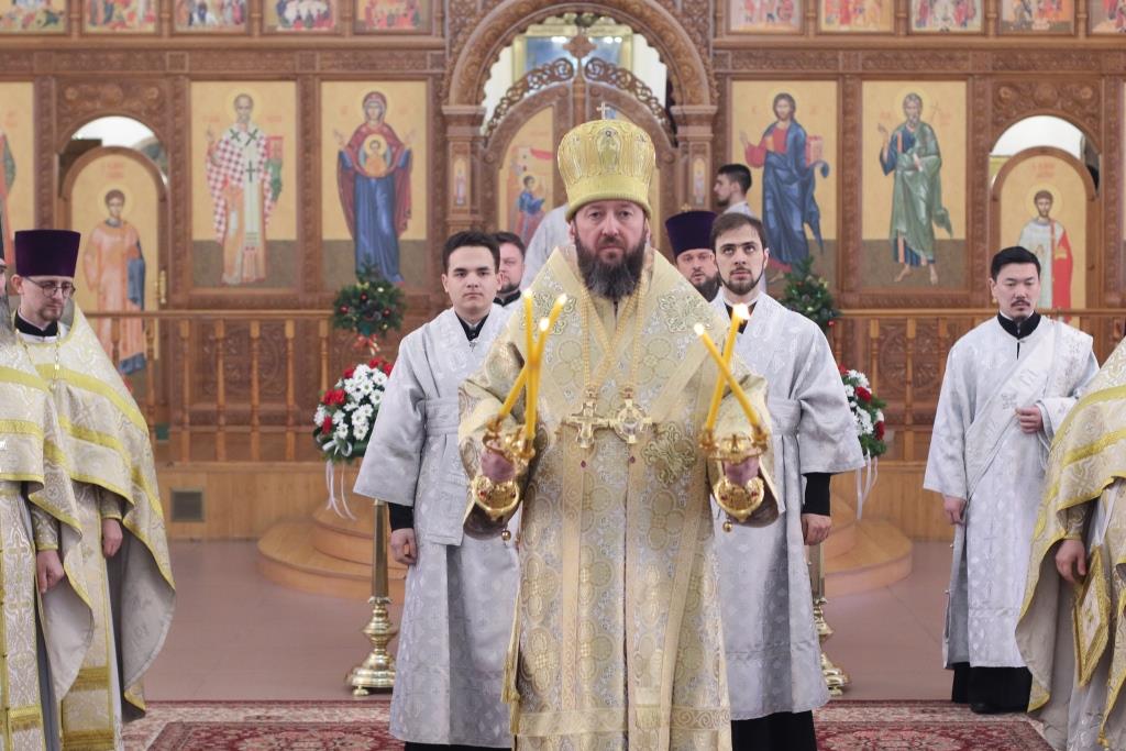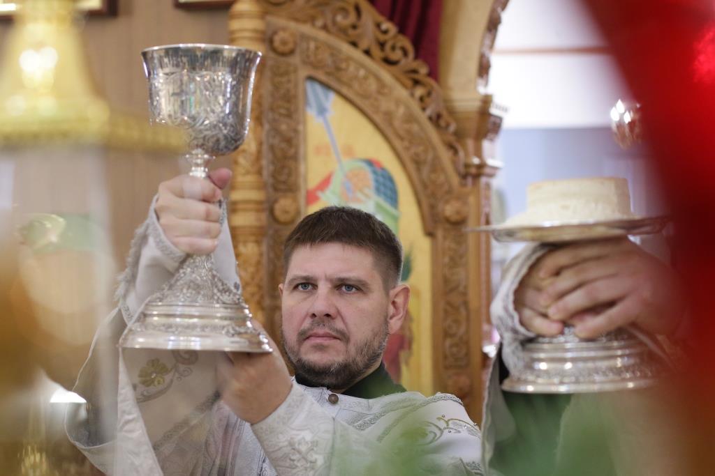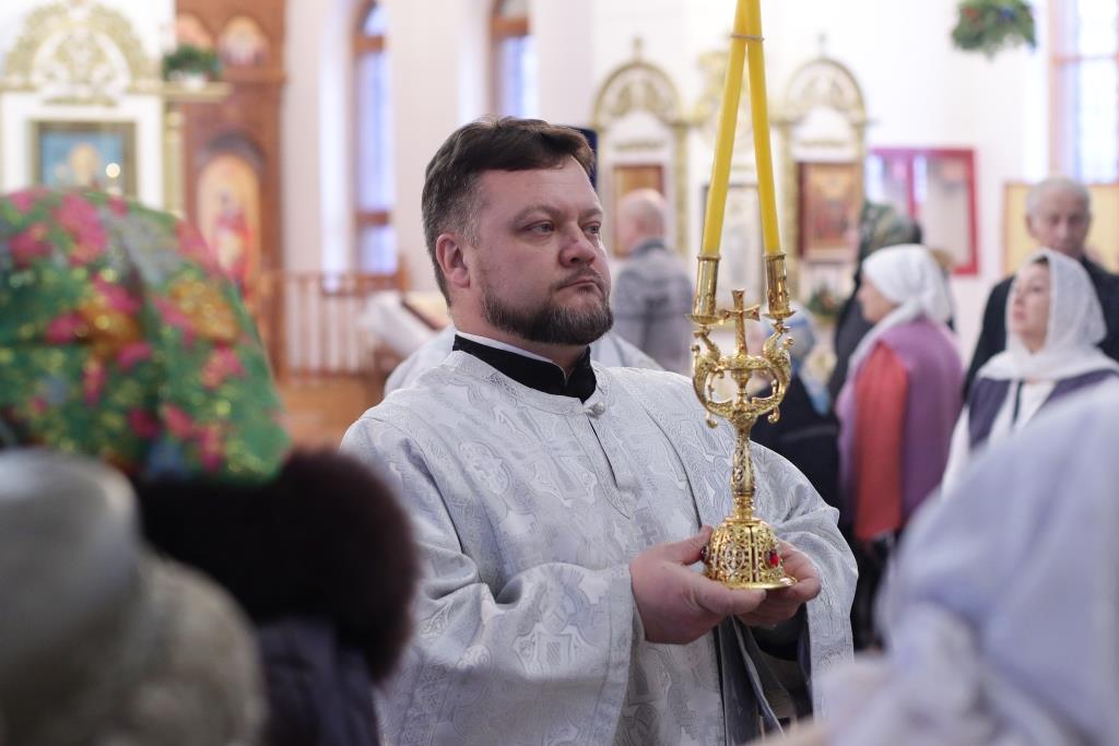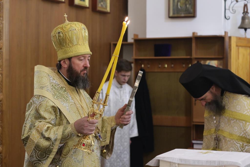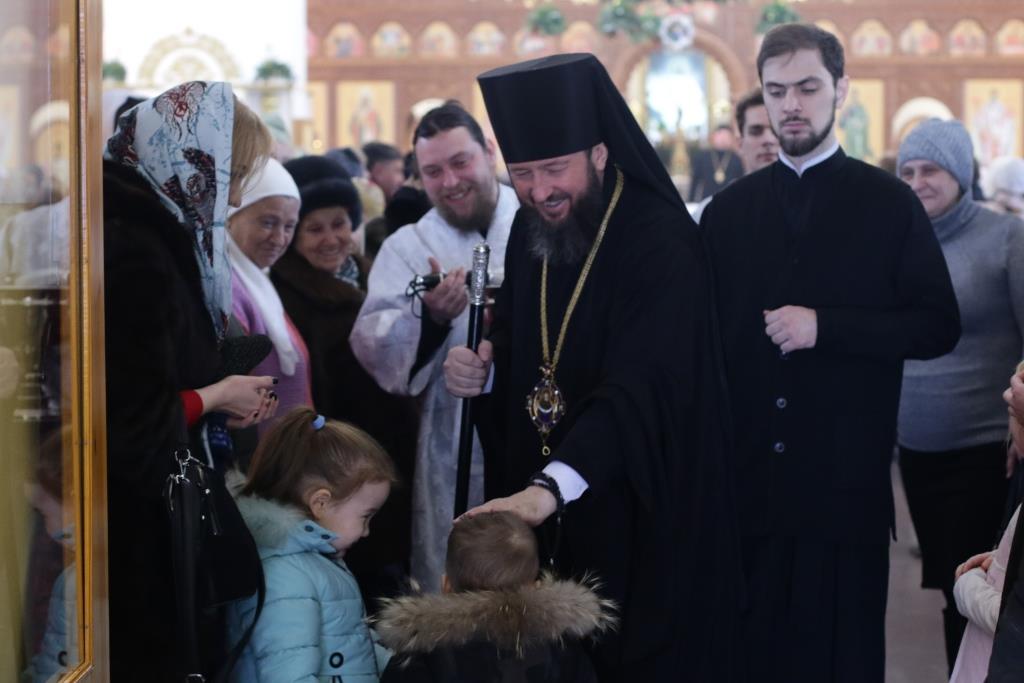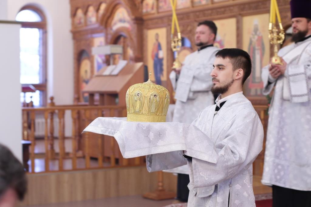 Перед причастием мирян проповедовал священник Константин Дьяков. После завершения воскресной Литургии Преосвященнейший епископ Амфилохий поздравил молящихся с праздником и обратился к прихожанам со словами проповеди.
