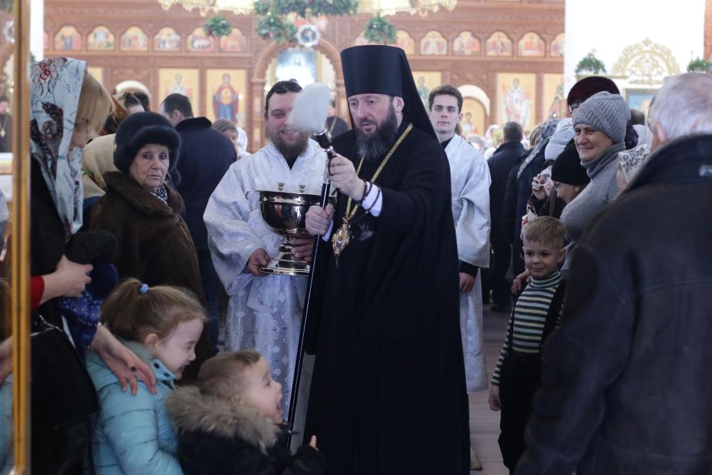После архипастырского наставления Владыка епископ призвал на собравшихся Божие благословение и окропил прихожан святой водой.