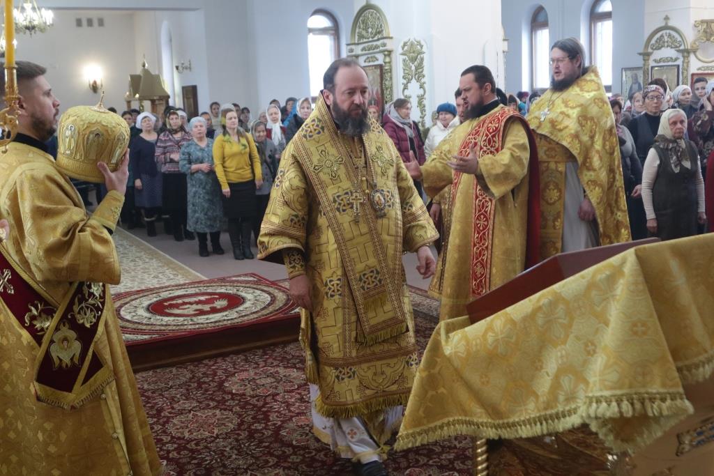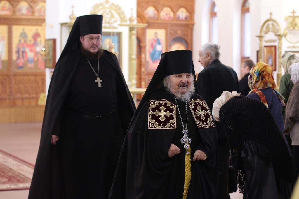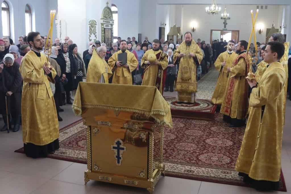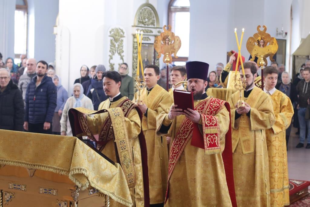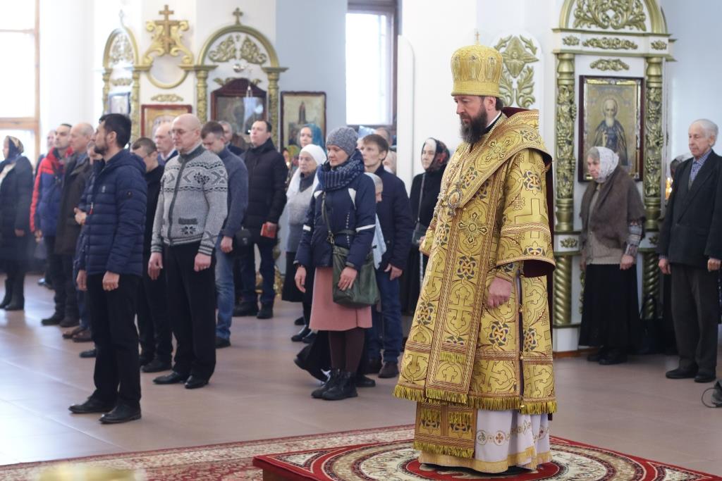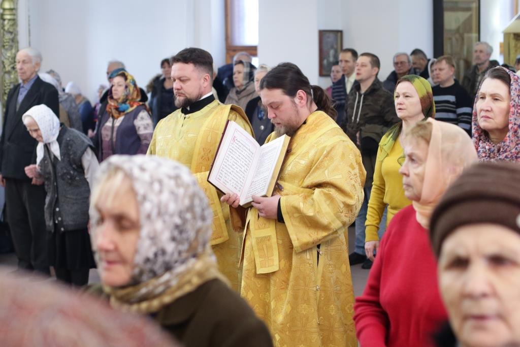 За воскресным богослужением молились прихожане собора, братия Свято-Троицкой мужской обители, сотрудники епархиального управления. Песнопения Литургии и Недели о мытаре и фарисее исполнял хор под управлением регента Н. Романцовой. На заупокойной ектении возглашались особые прощения о «всех, в годы гонения за веру Христову пострадавших».