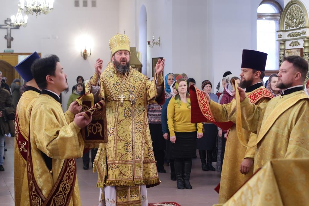 Преосвященнейший епископ Усть-Каменогорский и Семипалатинский Амфилохий совершил Божественную Литургию святителя Иоанна Златоуста в Андреевском кафедральном соборе Усть-Каменогорска. Архипастырю сослужили: духовник епархии архимандрит Спиридон (Теплухин), секретарь Владыки иеромонах Силуан (Магилев), заведующий канцелярией епархии иерей Константин Дьяков, иеромонах Назарий (Шелыгин), секретарь епархии диакон Илия Кван, протодиаконы Георгий Засыпкин и Андрей Дудник, диакон Владимир Лаврешин.