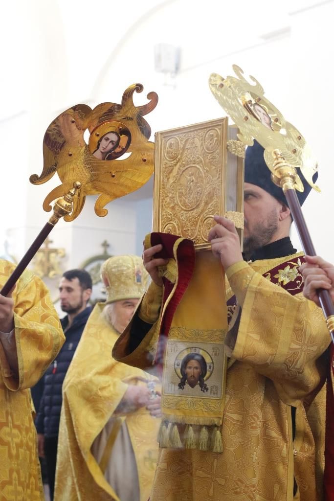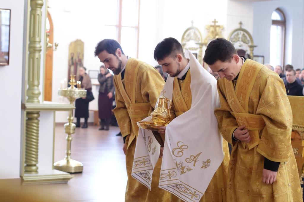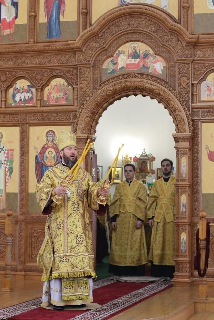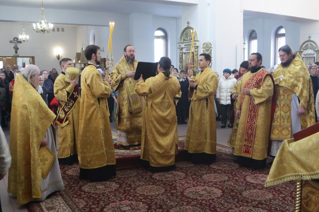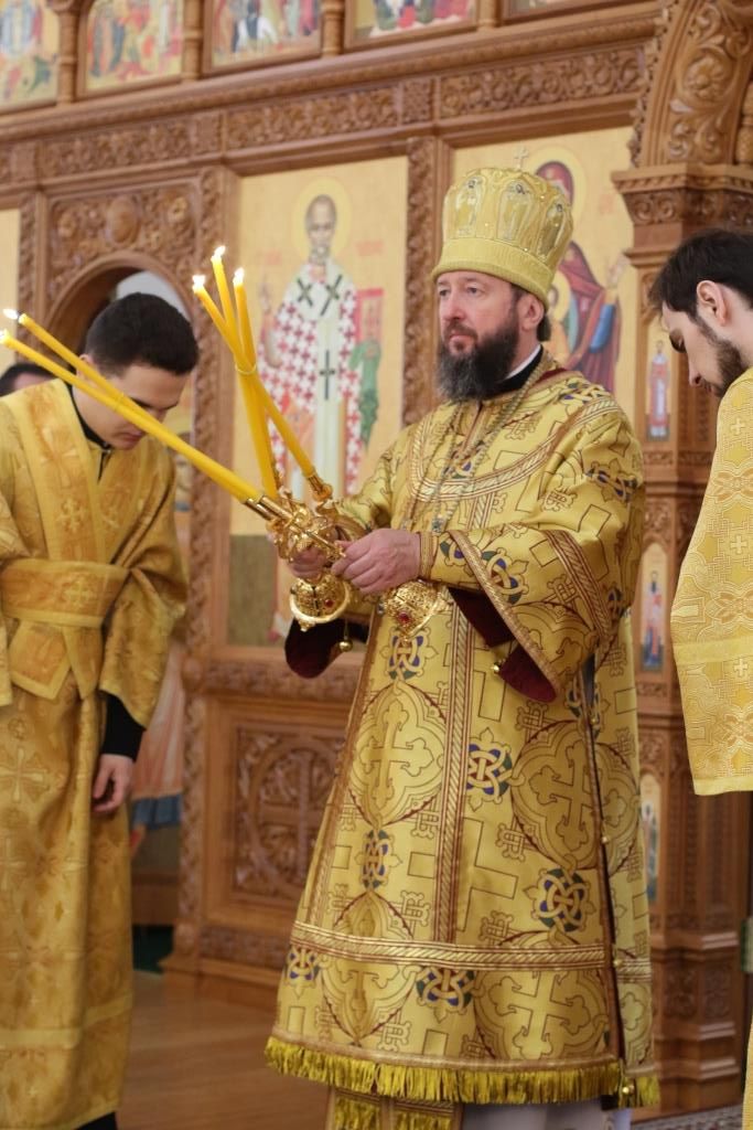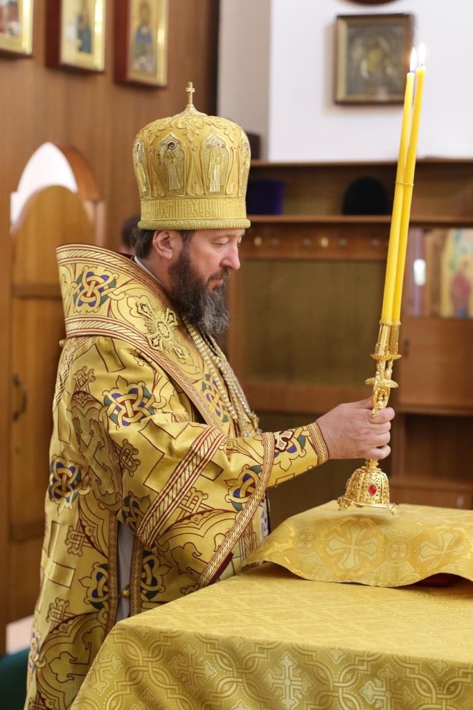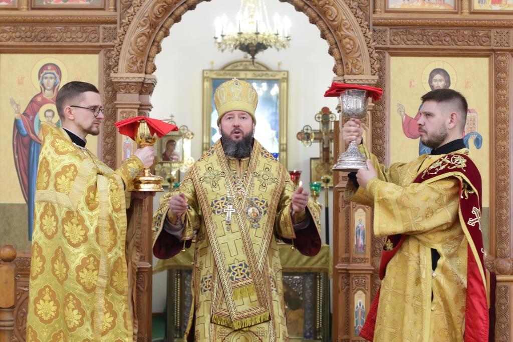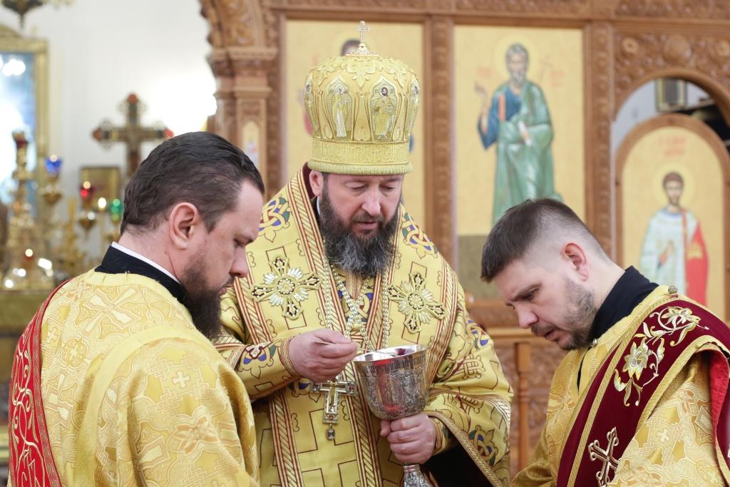 Перед причастием мирян проповедовал иеромонах Силуан (Магилев). После заамвонной молитвы было совершено славление святым новомученикам и исповедникам, после которого епископ Амфилохий поздравил молящихся с праздником и обратился к прихожанам со словами проповеди.