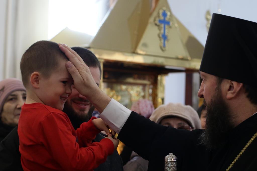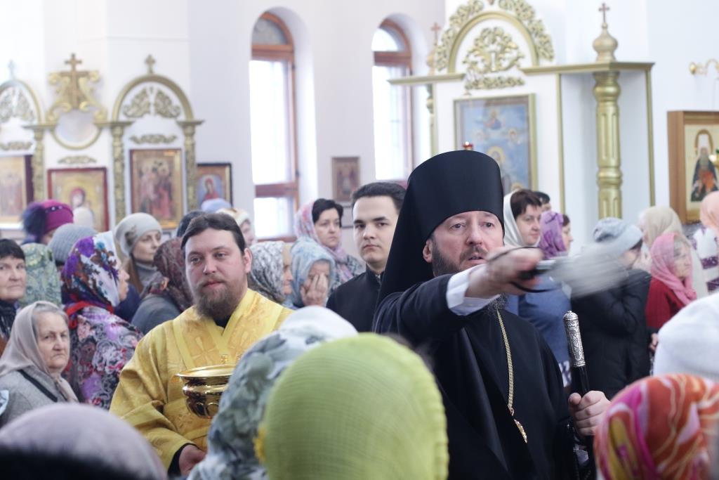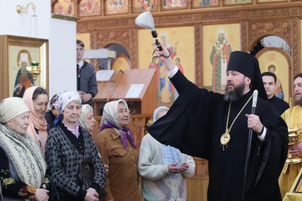 После архипастырского наставления Владыка епископ призвал на собравшихся Божие благословение и окропил прихожан святой водой.