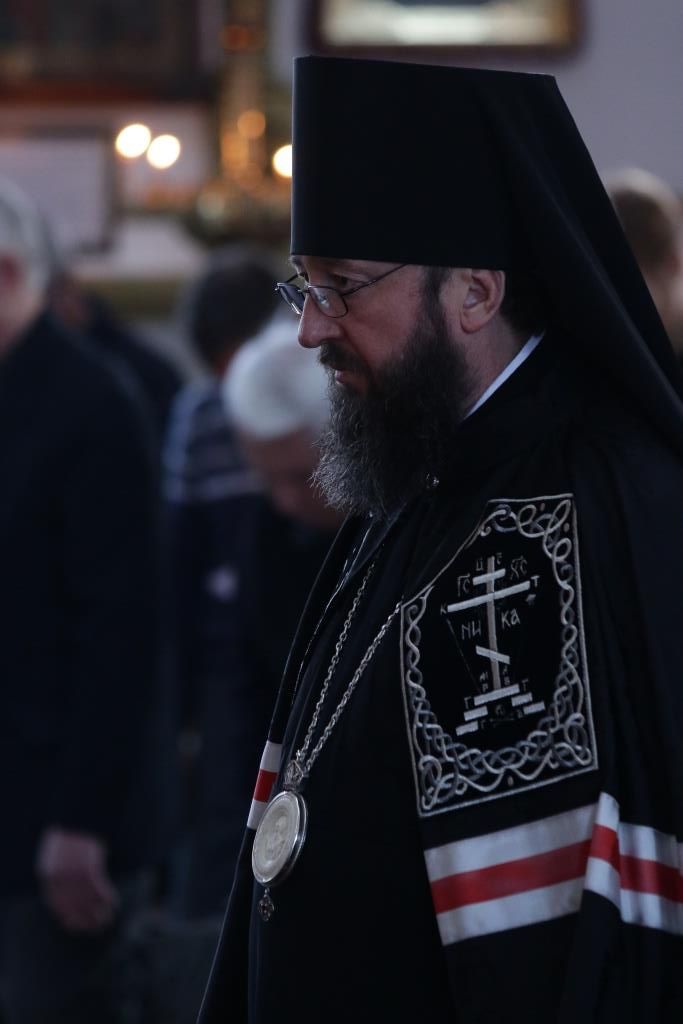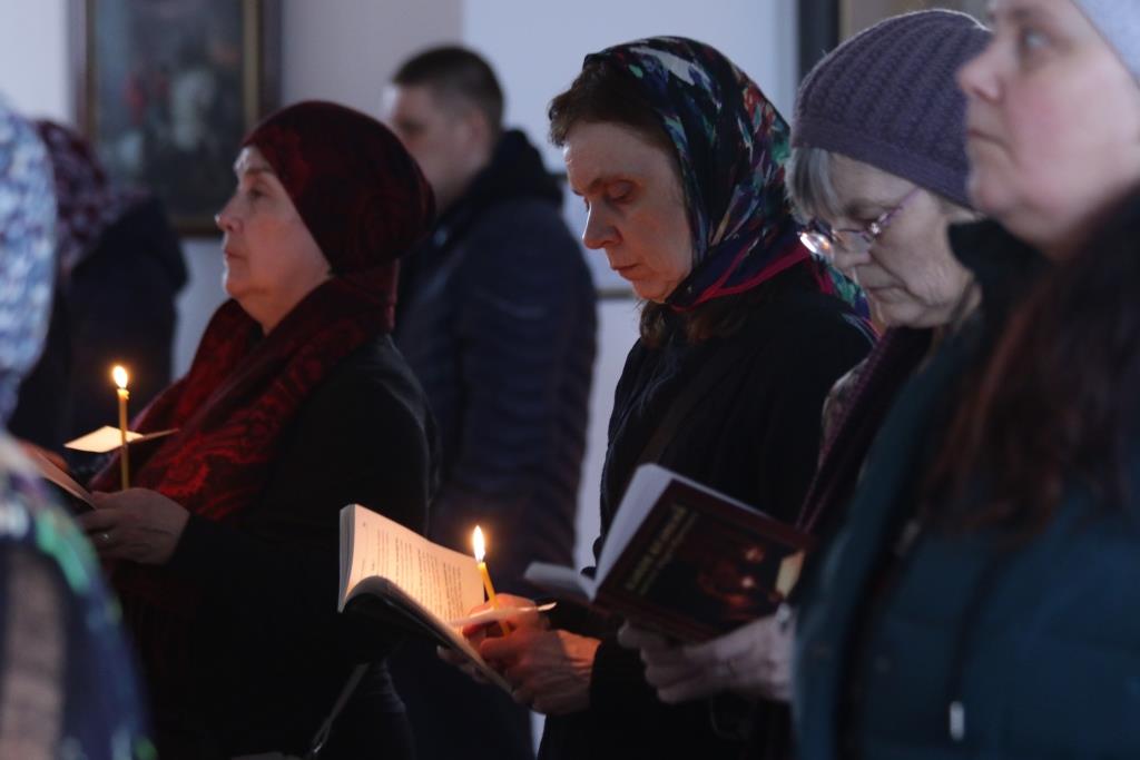 За Богослужением молились клирики и прихожане кафедрального собора, братия Свято-Троицкого мужского монастыря, сотрудники епархиального управления. Песнопения повечерия исполнял хор Андреевского кафедрального собора под управлением регента Н. Романцовой.