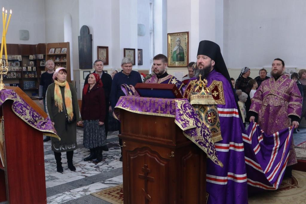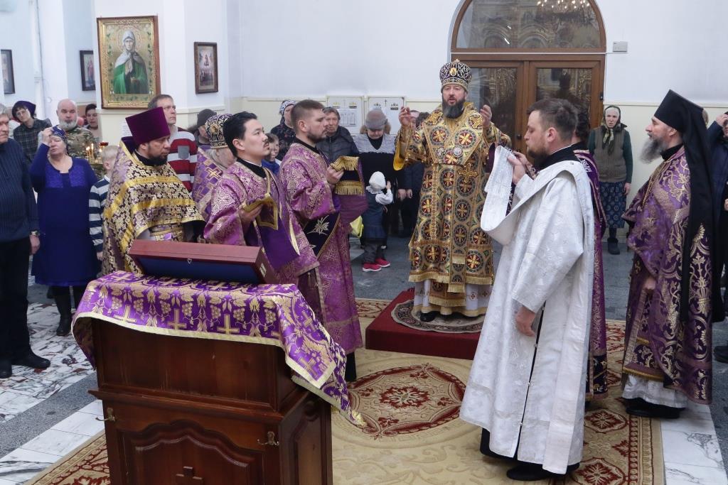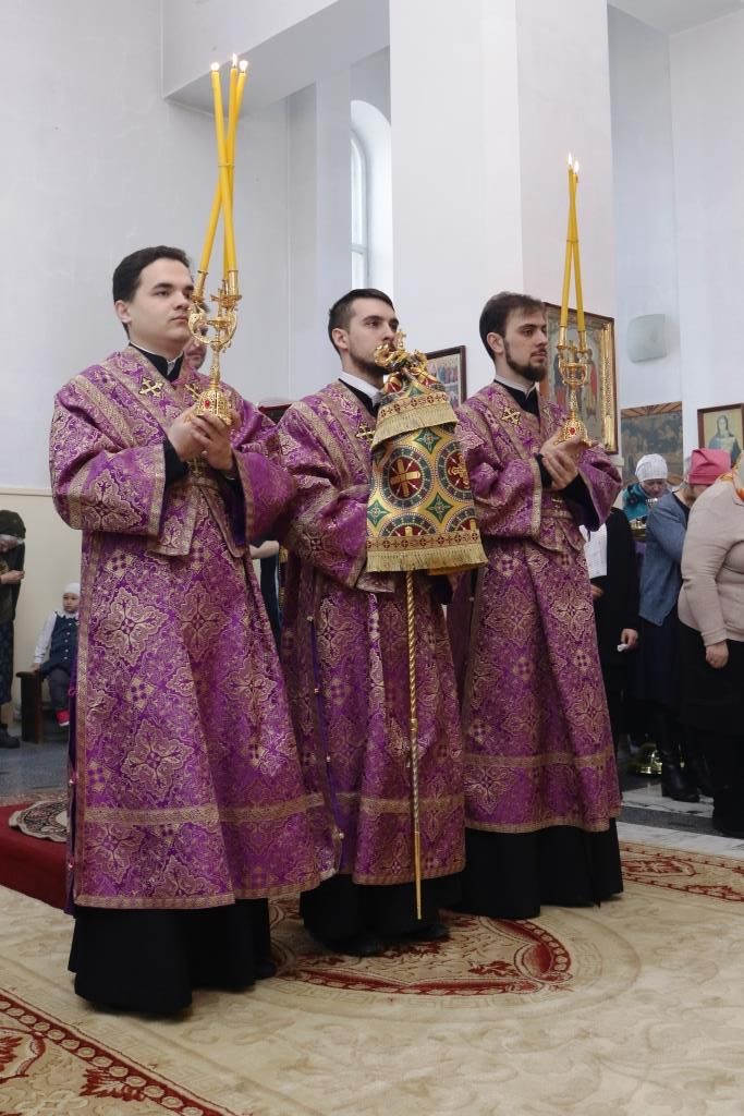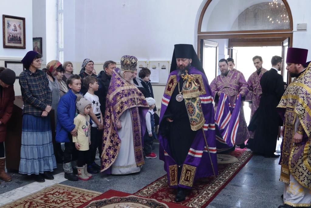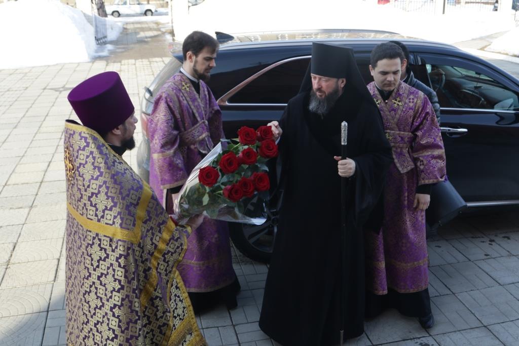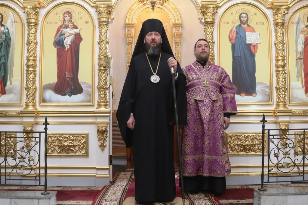 Его Преосвященству сослужили: духовник епархии архимандрит Спиридон (Теплухин), настоятель храма иерей Вячеслав Гутов, ключарь Андреевского собора иеромонах Никодим (Авдеев),секретарь епархии диакон Илия Кван, протодиакон Георгий Засыпкин, протодиакон Андрей Дудник, диакон Виталий Екидин.