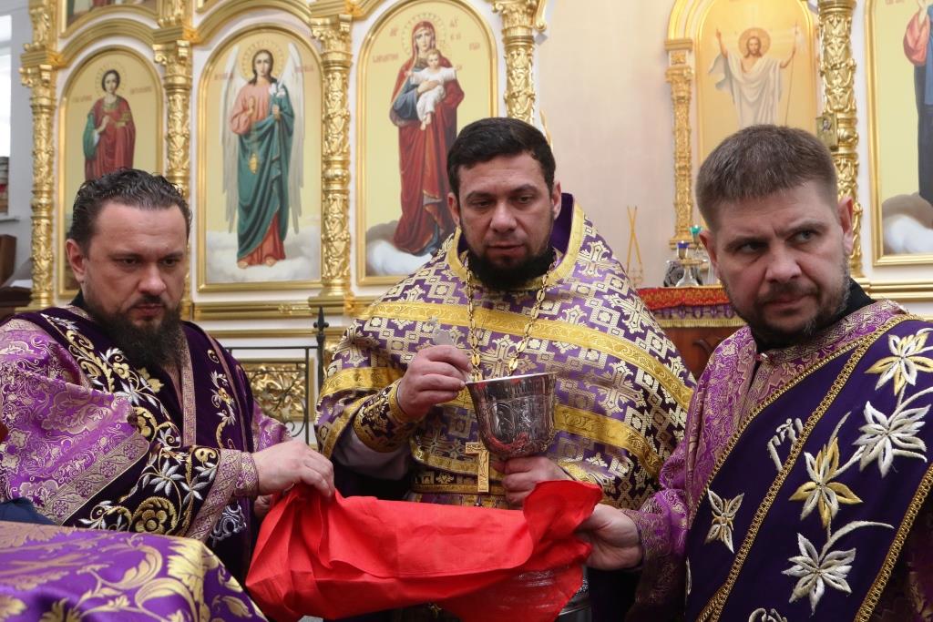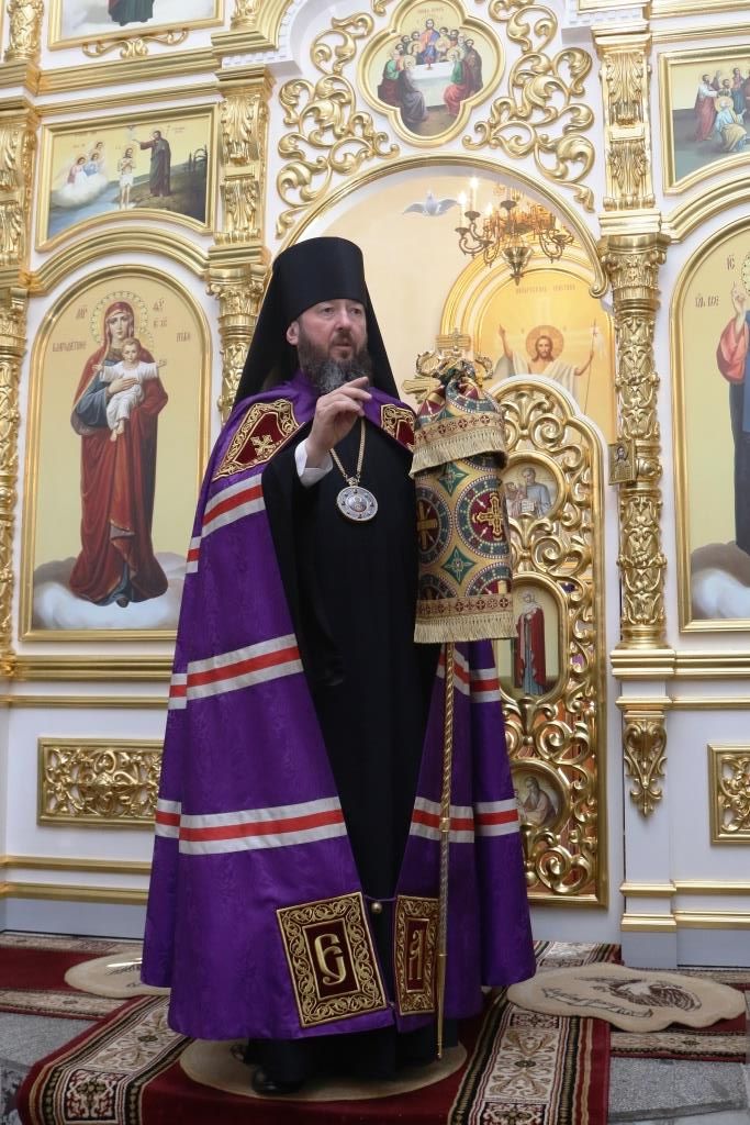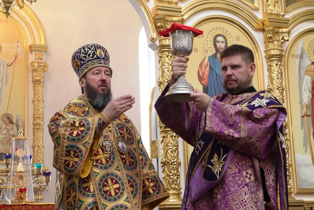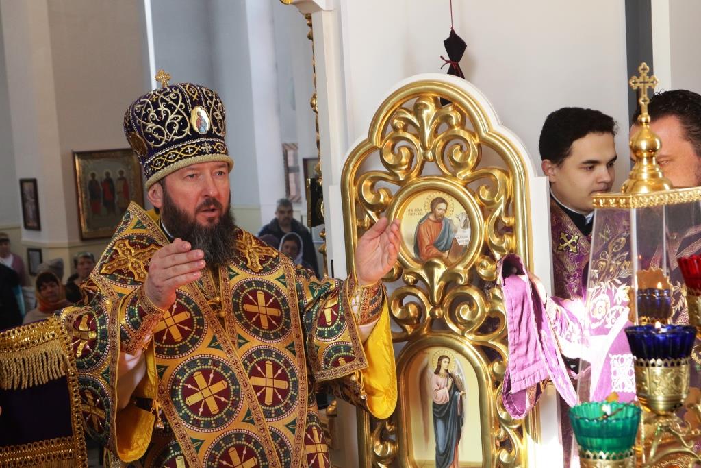 Проповедь перед Причастием произнёс иерей Вячеслав Гутов. По окончании Литургии епископ Амфилохий обратился к верующим со словами проповеди: