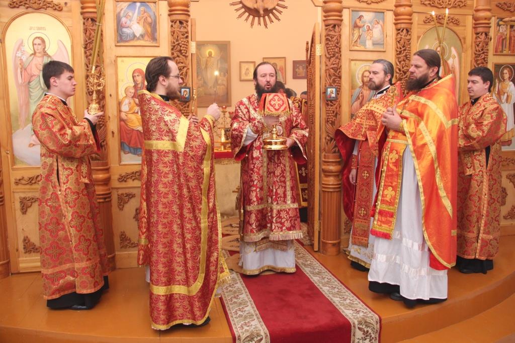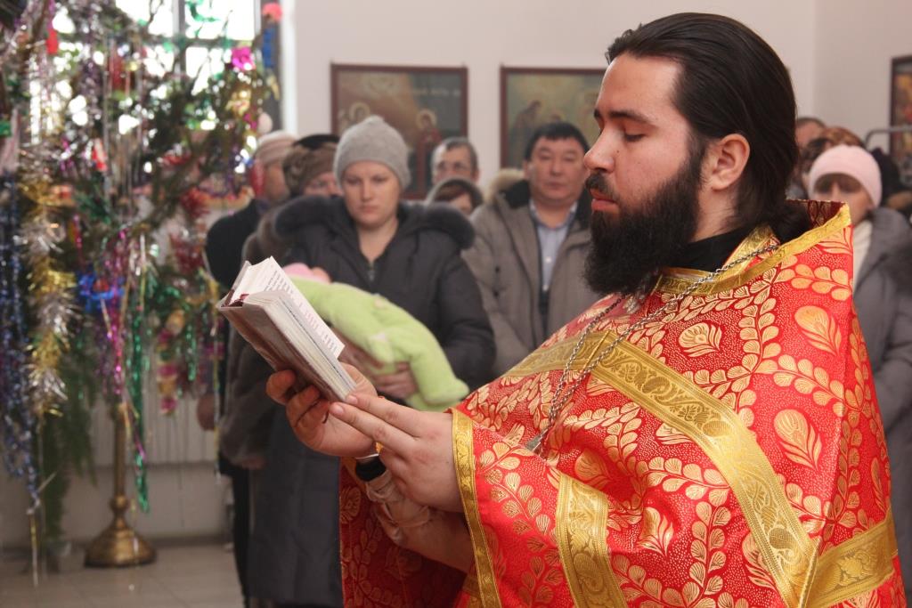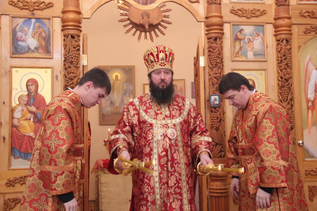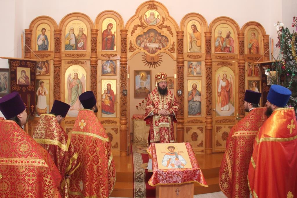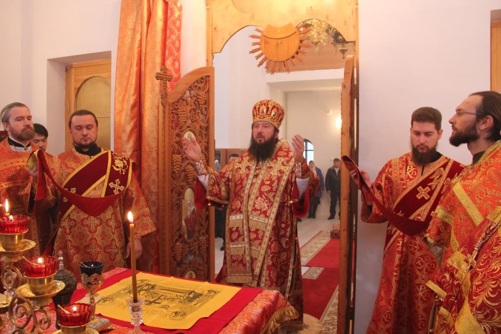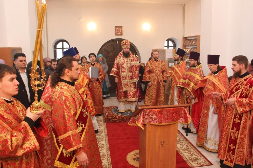 Его Преосвященству сослужили: благочинный Усть-Каменогорского церковного округа иерей Алексий Анищенко, настоятель Казанского храма с. Усть-Таловка протоиерей Роман Сычук, настоятель Преображенского храма г. Шемонаиха иерей Петр Хонин, настоятель Трехсвятительского храма пос. Глубокое иерей Константин Акентьев, настоятель храма иерей Михаил Арабов, иеромонах Силуан (Магилев), иерей Роман Подрезов, диаконский чин.