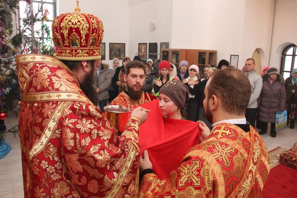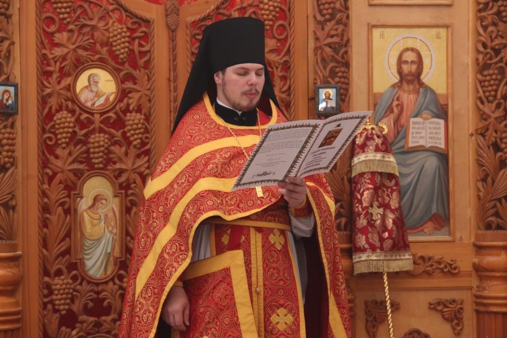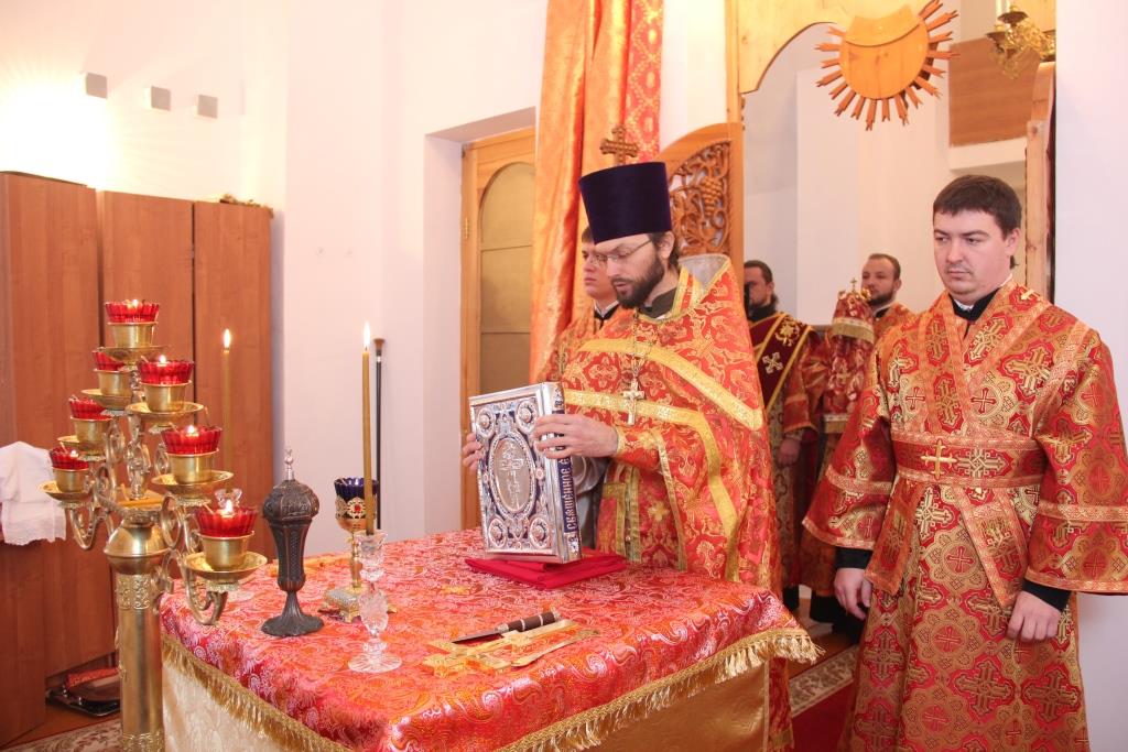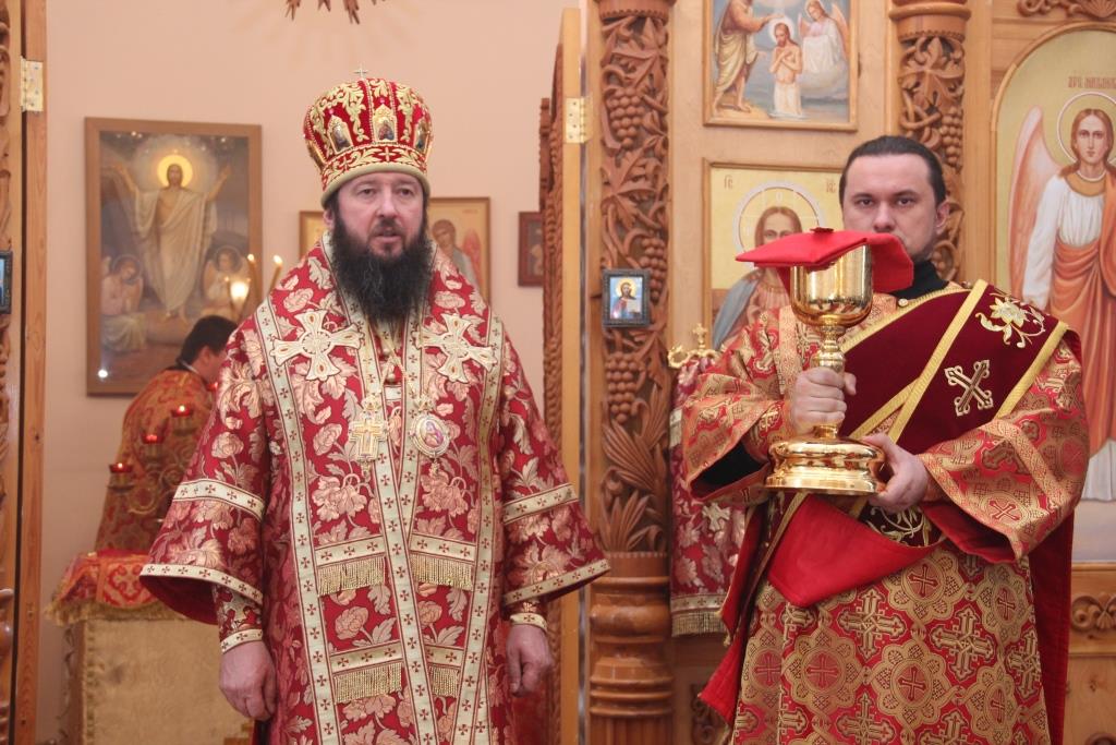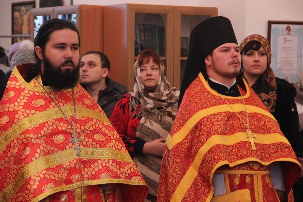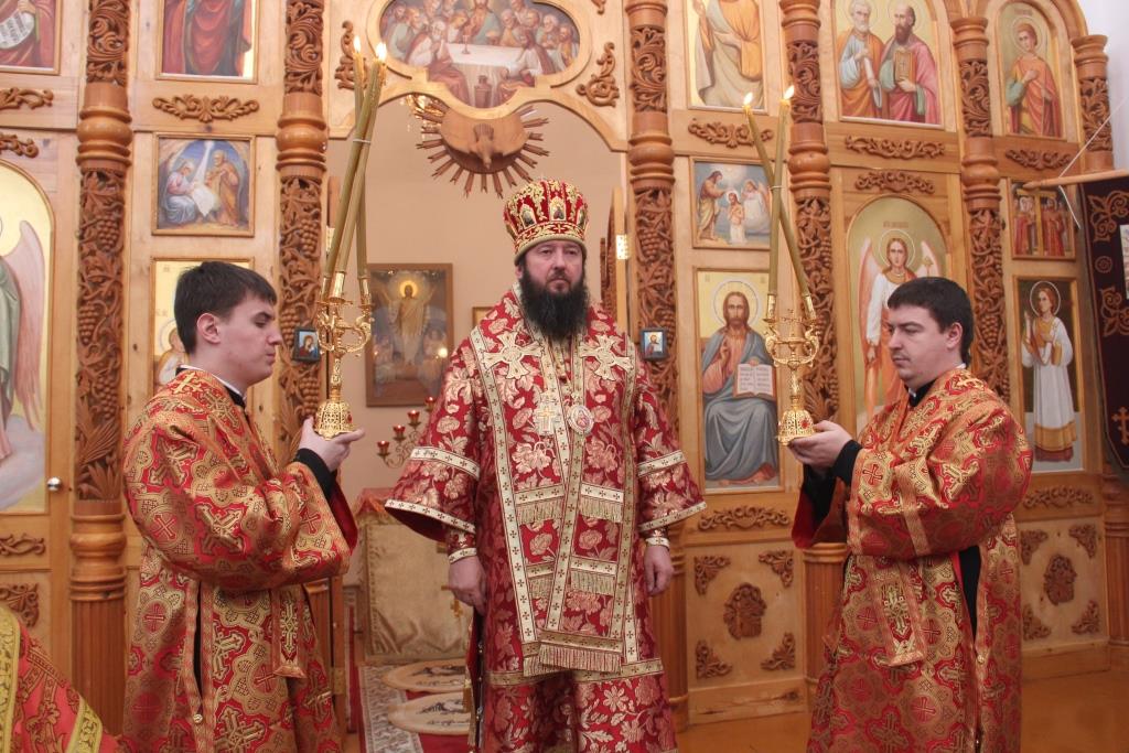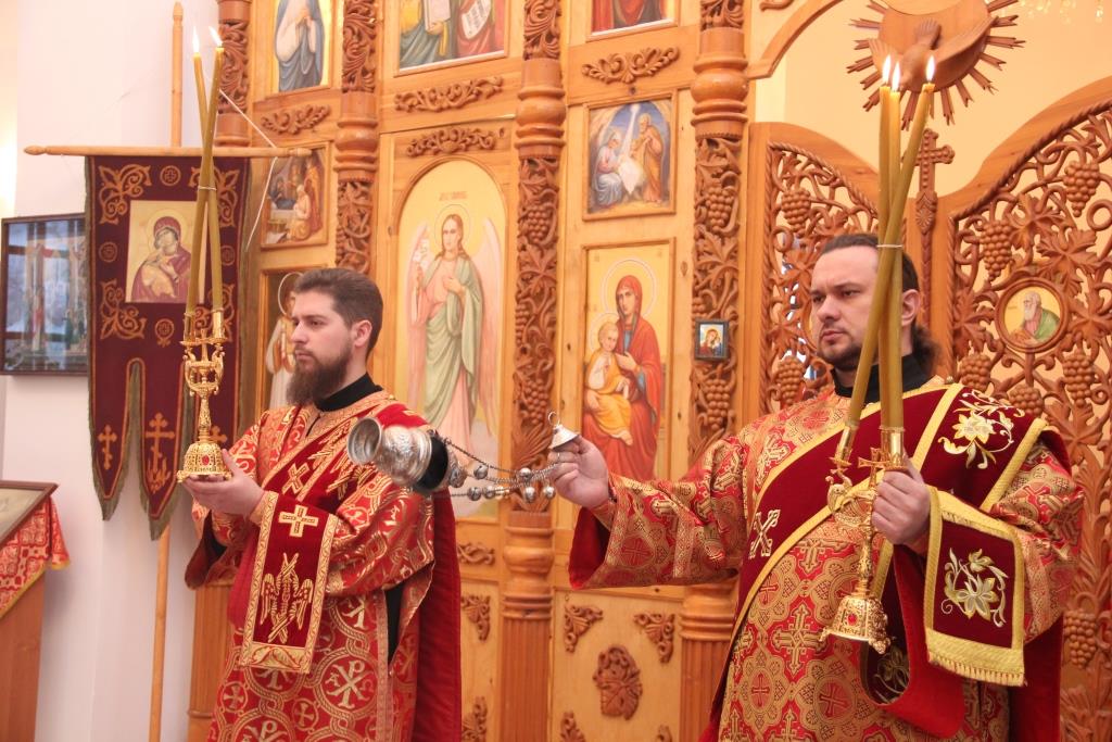 Его Преосвященству сослужили: благочинный Усть-Каменогорского церковного округа иерей Алексий Анищенко, настоятель Казанского храма с. Усть-Таловка протоиерей Роман Сычук, настоятель Преображенского храма г. Шемонаиха иерей Петр Хонин, настоятель Трехсвятительского храма пос. Глубокое иерей Константин Акентьев, настоятель храма иерей Михаил Арабов, иеромонах Силуан (Магилев), иерей Роман Подрезов, диаконский чин.