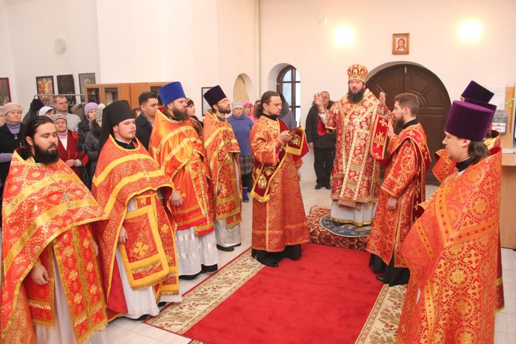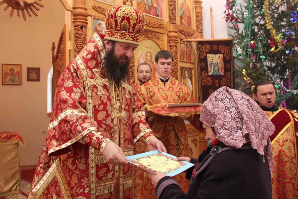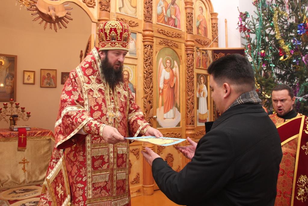 После славления с молитвой и величанием, Архипастырь поздравил настоятеля и прихожан храма с Рождеством Христовым и престольным праздником, пожелав молитвенного заступничества Первомученика и Архидиакона Стефана и Божией помощи во всех добрых делах и начинаниях во Славу Святой Церкви.