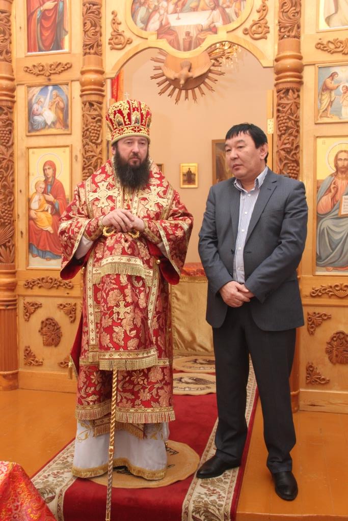 За богослужением присутствовал зам. акима Глубоковского района Жумадилов Серик Сапарович, который сердечно приветствовал архипастыря словами: «В Казахстане, где бок о бок живут представители разных вероисповеданий и национальностей, ставшем в мировом сообществе примером единства и мира, Рождество олицетворяет собой гармонию и взаимопонимание. Этот светлый праздник озаряет людей светом надежды и любви, учит проявлять милосердие и заботу по отношению к ближнему. Глава государства, Нурсултан Назарбаев, неоднократно подчеркивал, что главное достояние Казахстана – это сплоченность и согласие нашего многонационального народа, формирующие основу государственности, являющиеся залогом ее стабильности».
