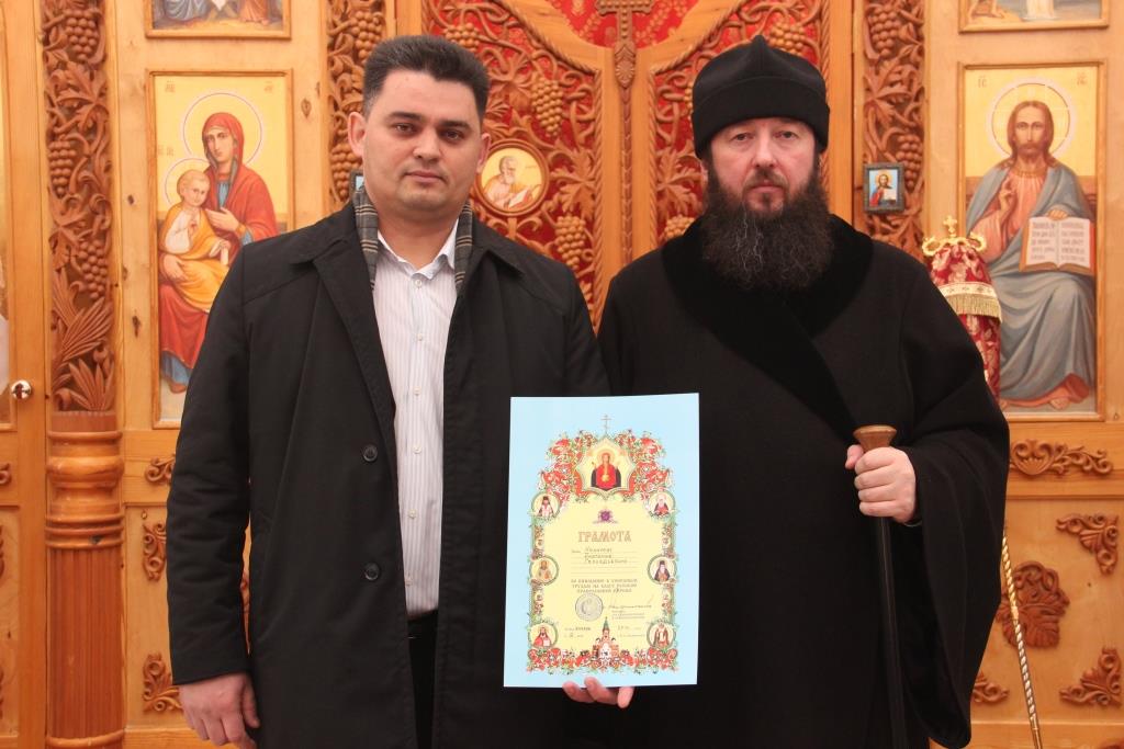 Также епископ Амфилохий удостоил, за усердные труды на благо Русской Православной Церкви, архиерейских грамот благодетелей прихода: директора ПСШ с. Предгорное – Ершову Нину Андреевну и главного инспектора по ВКО ТОО «Корпорация Казахмыс» – Назарова Анатолия Геннадьевича.