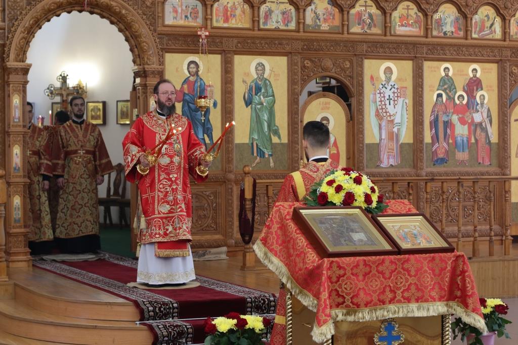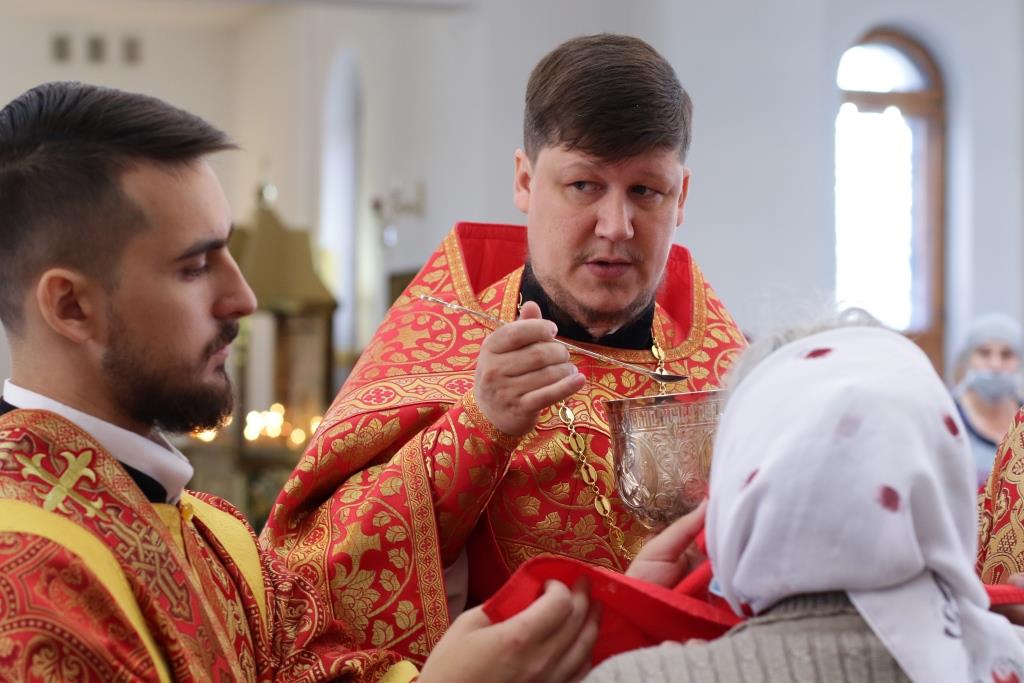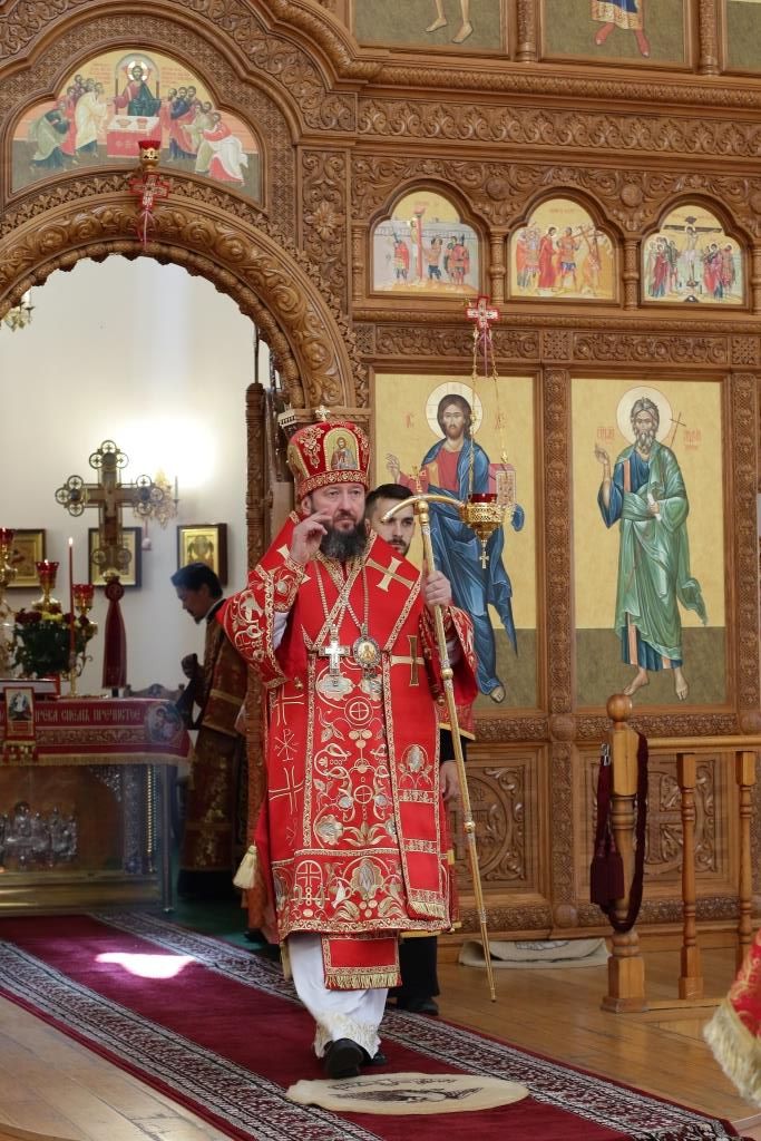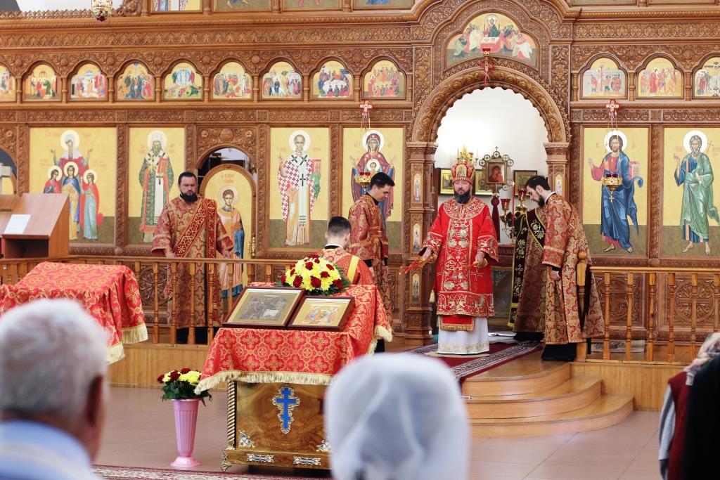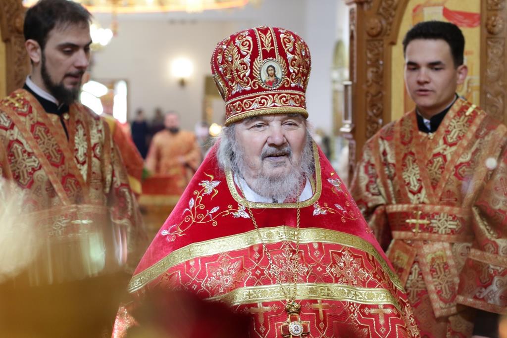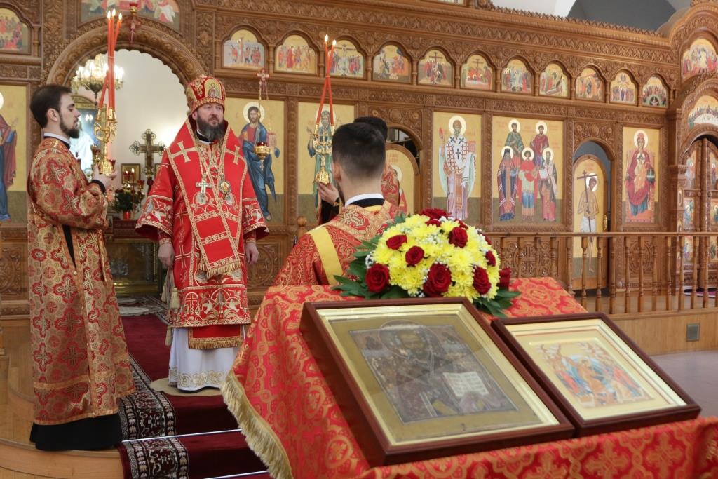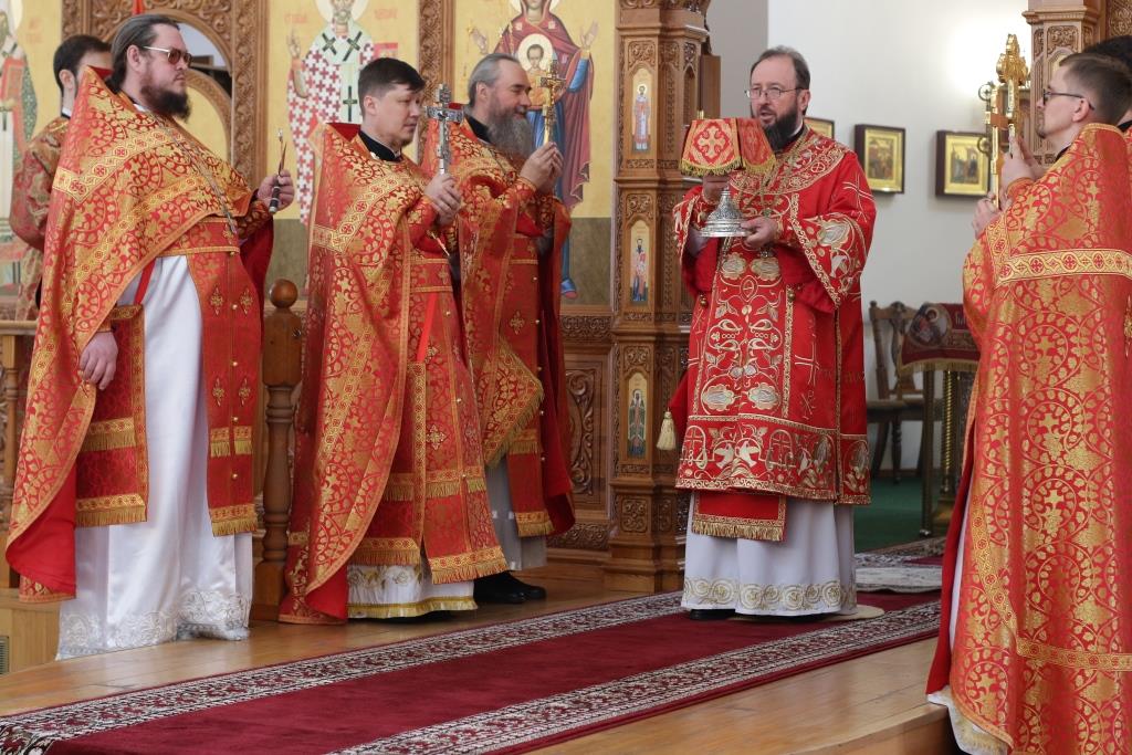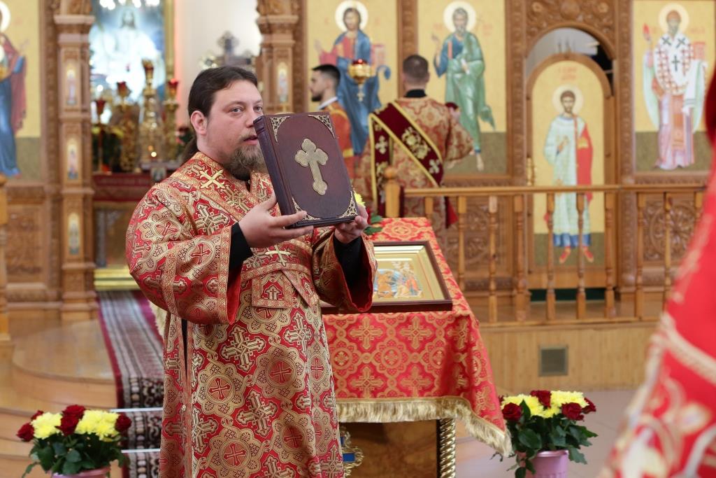 Перед причастием мирян проповедовал иерей Константин Дьяков. После заамвонной молитвы было совершено славление святителю Христову Николаю. В завершение богослужения Преосвященнейший Архипастырь поздравил собравшихся с праздником и обратился к молящимся со словами проповеди.