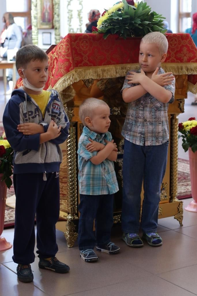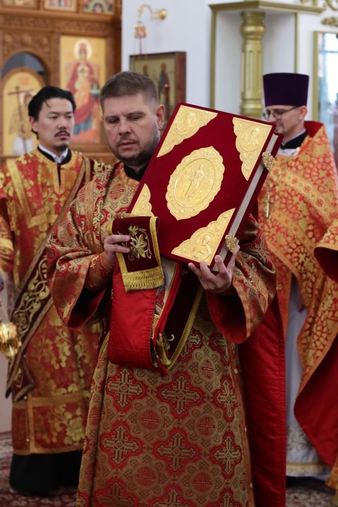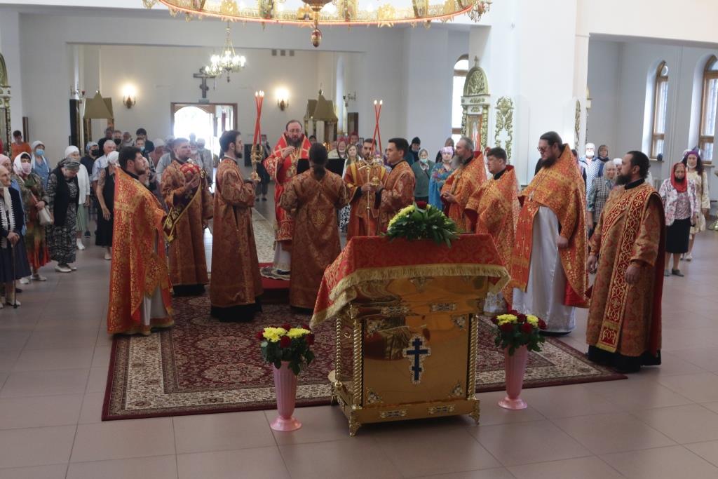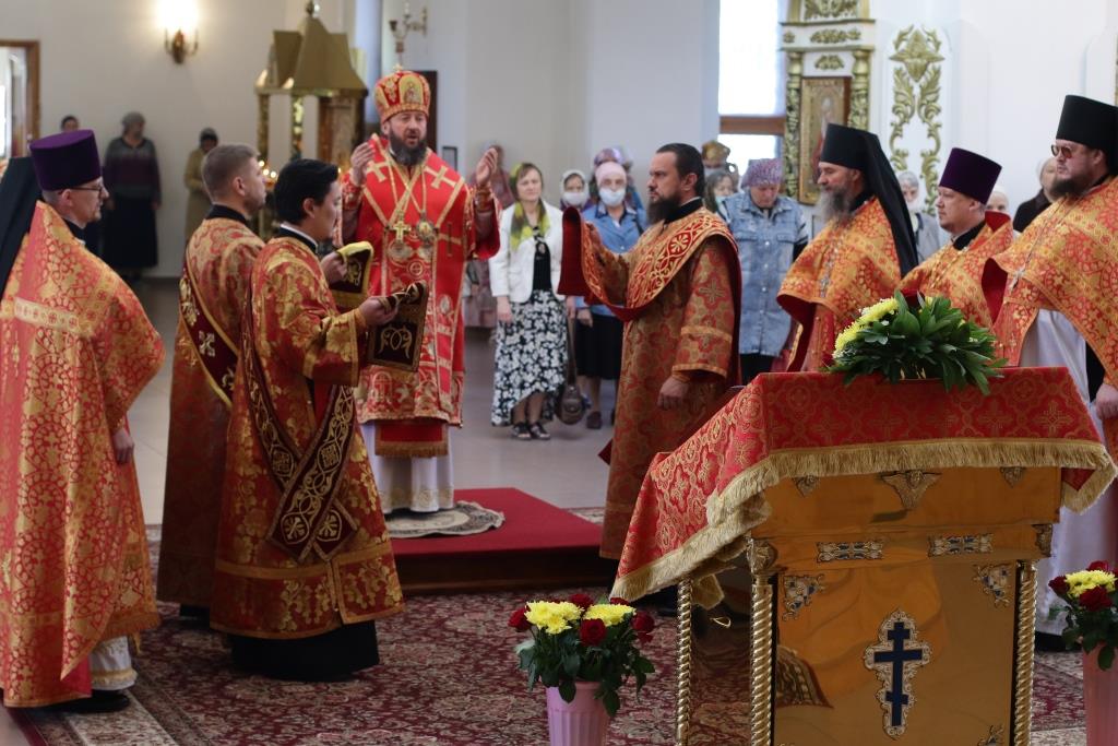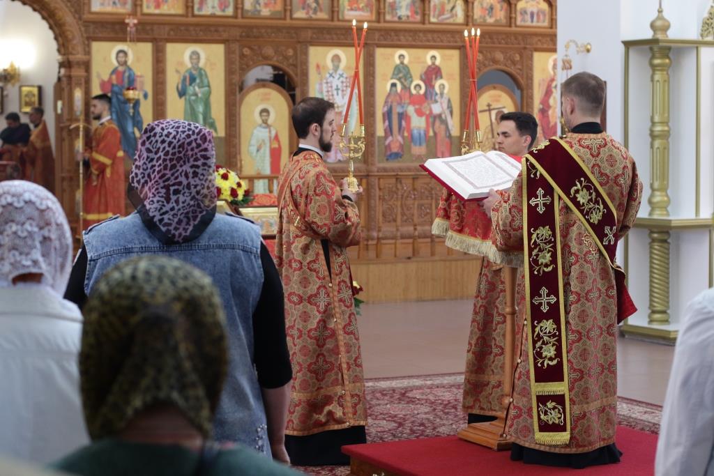 Праздничные песнопения исполнял хор кафедрального собора под управлением регента Н. Романцовой. За богослужением молились прихожане главного храма епархии и насельники Свято-Троицкого мужского монастыря города Усть-Каменогорска.