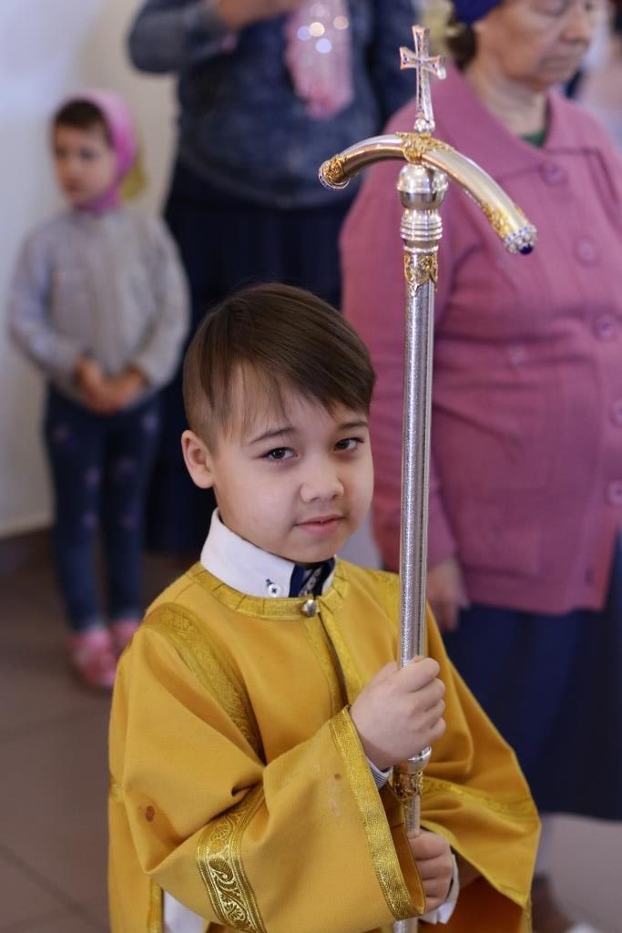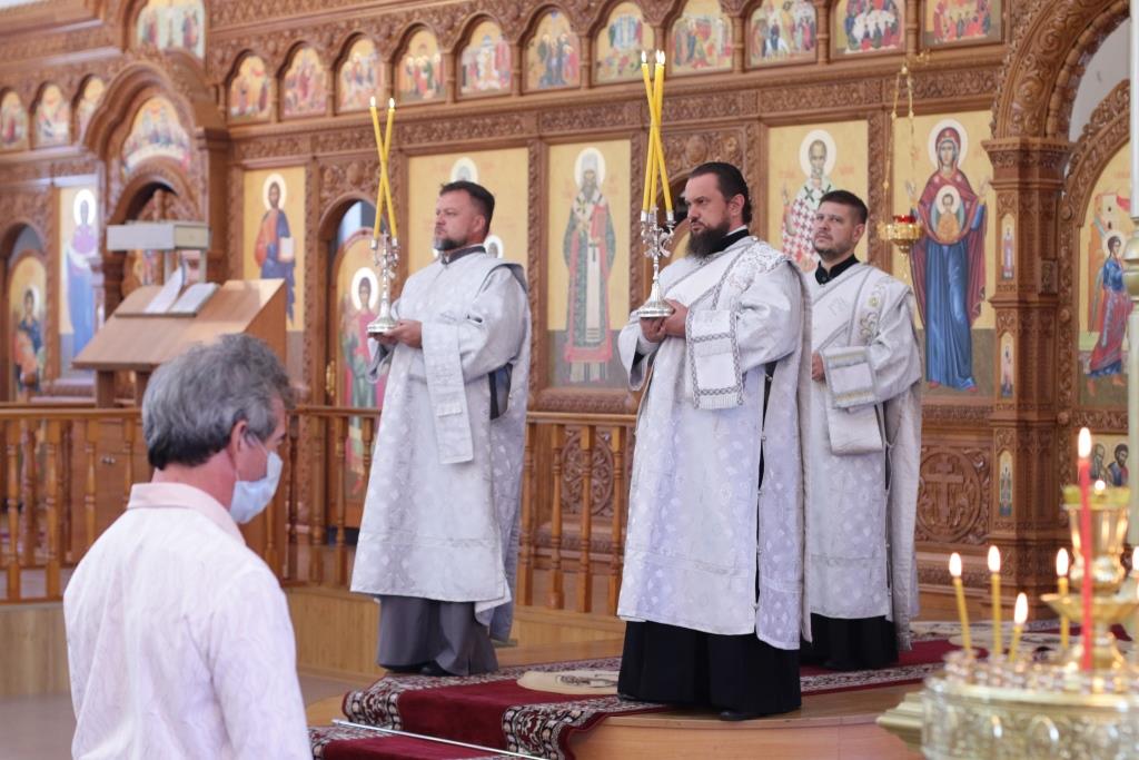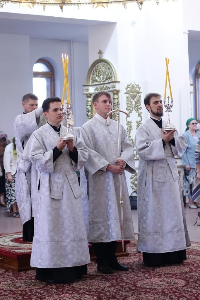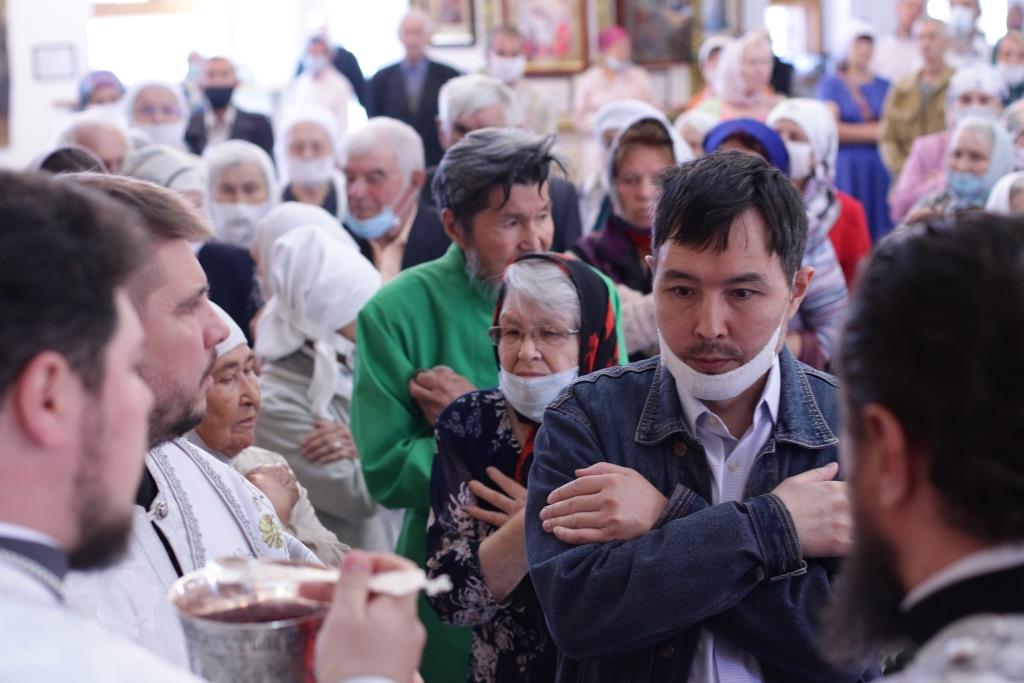 За богослужением молились насельники Свято-Троицкой обители, руководители и сотрудники епархиальных отделов, прихожане кафедрального собора, паломники с окрестных населенных пунктов. Перед причастием мирян проповедовал ключарь кафедрального собора.