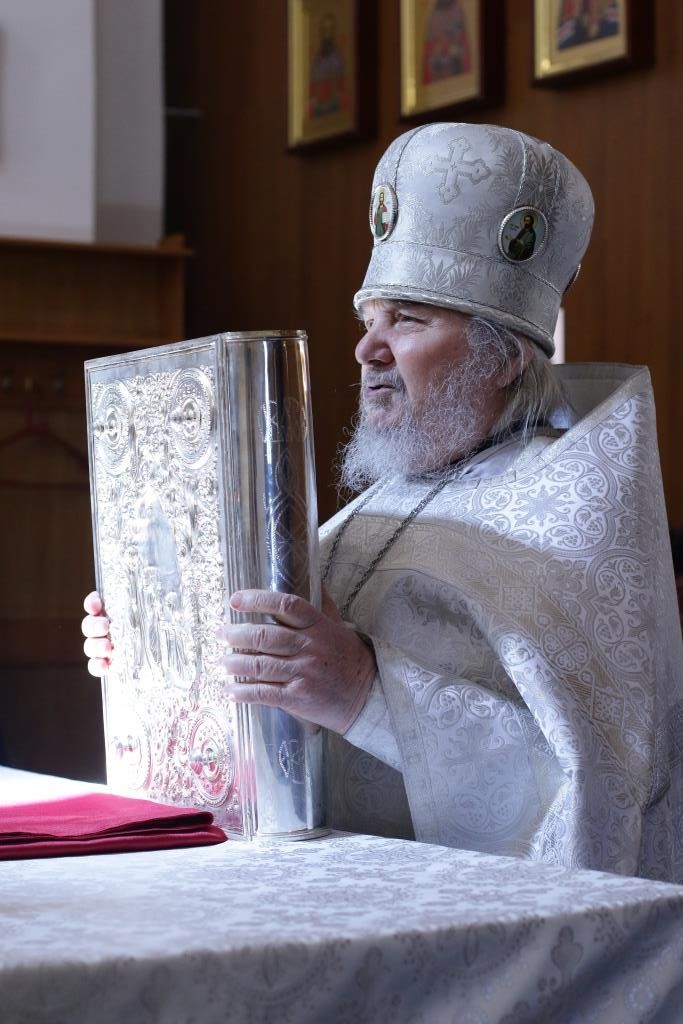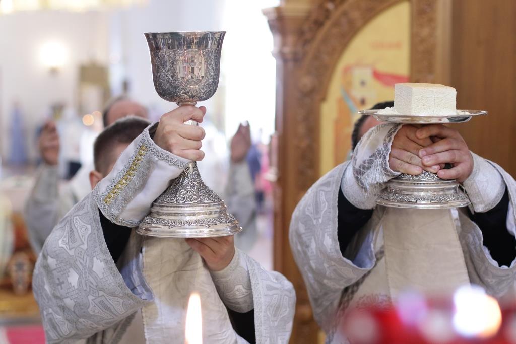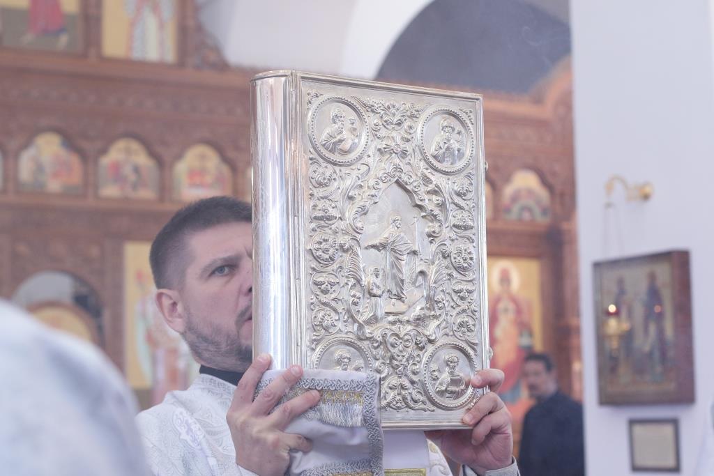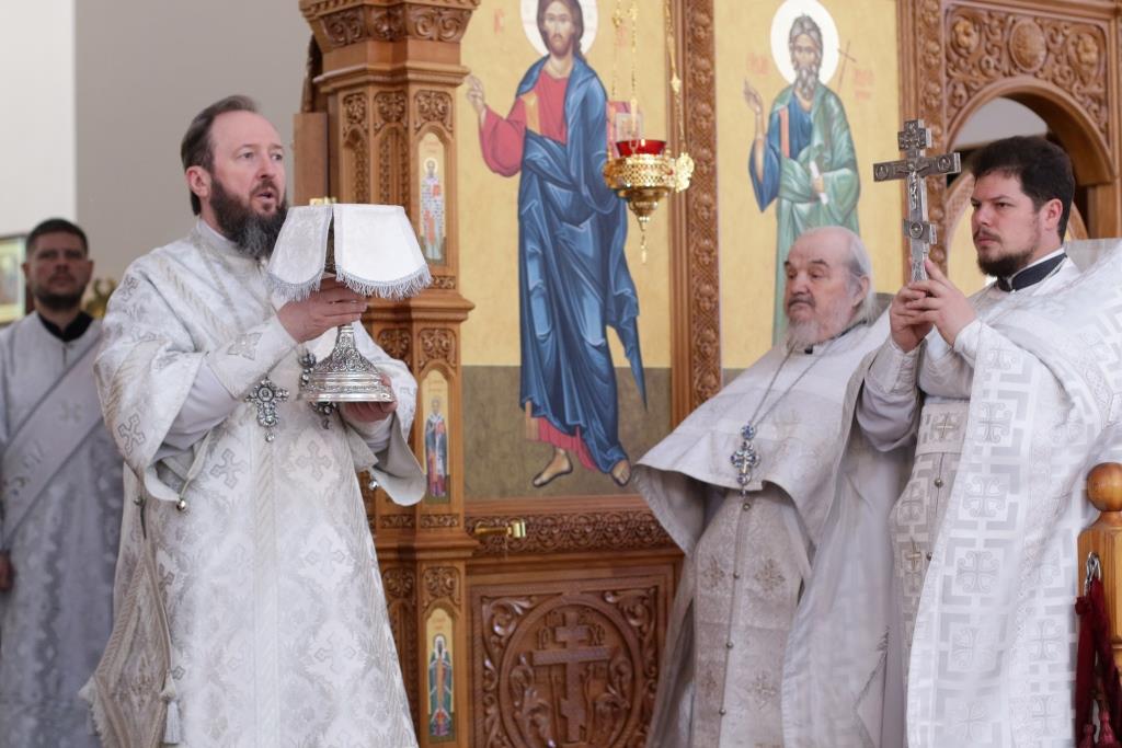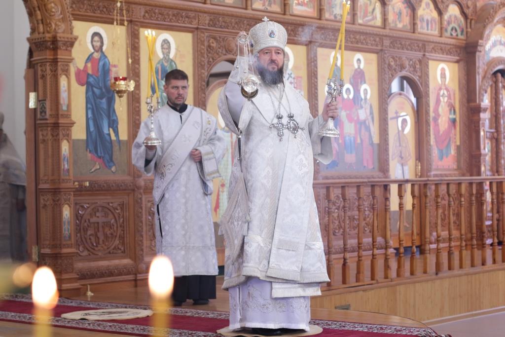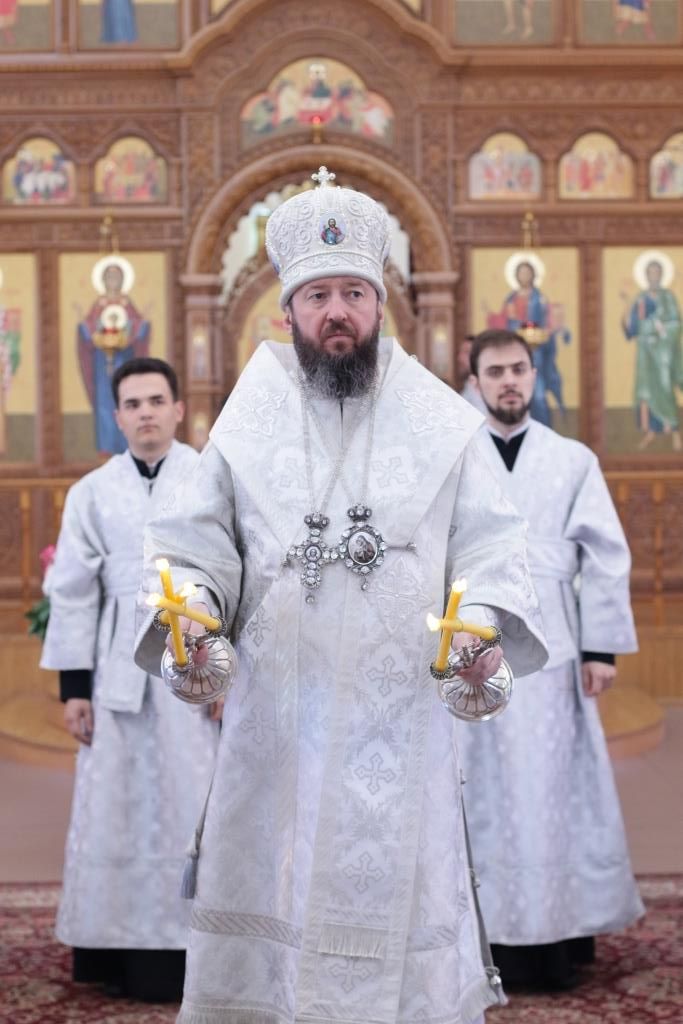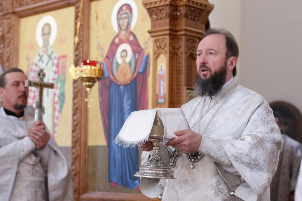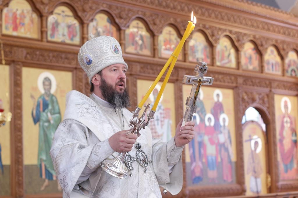 Торжественное богослужение завершилось славлением Господу Иисусу, после чего епископ Амфилохий поздравил всех собравшихся с праздником и обратился к народу Божию со словами проповеди.