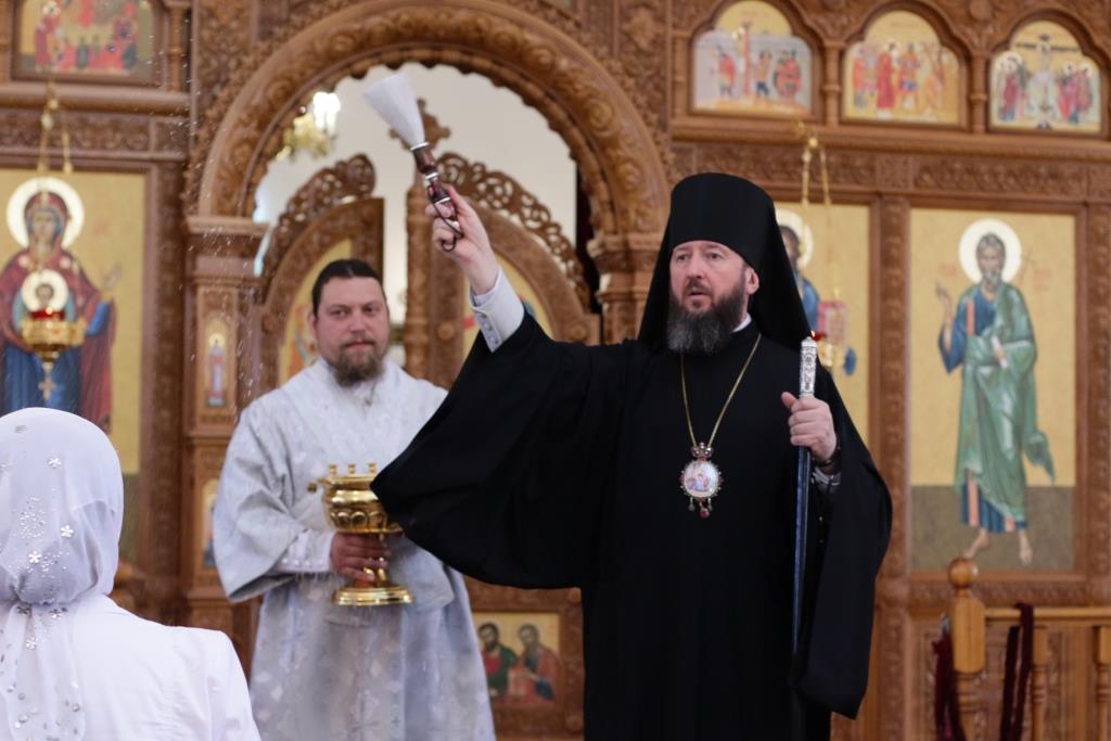 После проповеди Владыка епископ призвал на собравшихся Божие благословение и окропил прихожан святой водой.