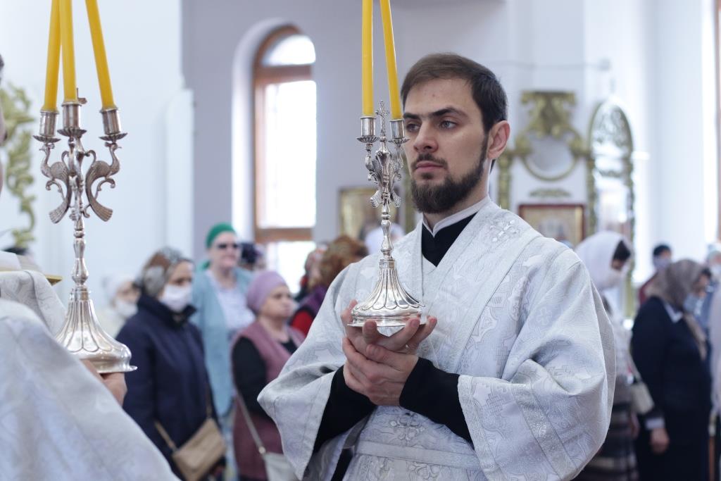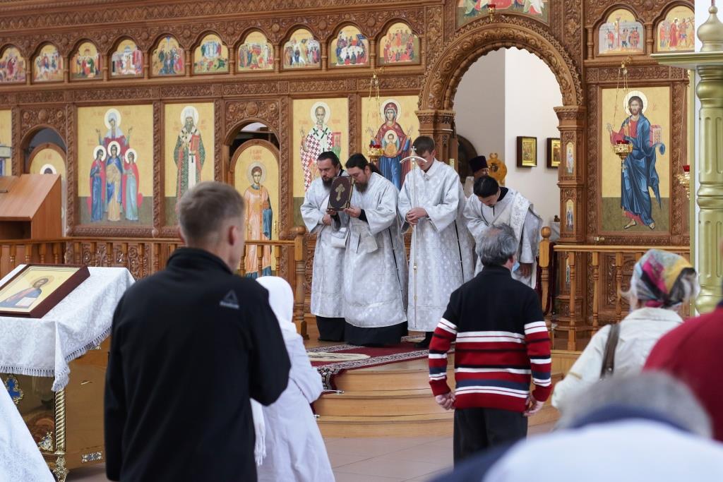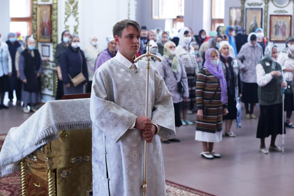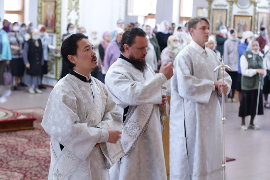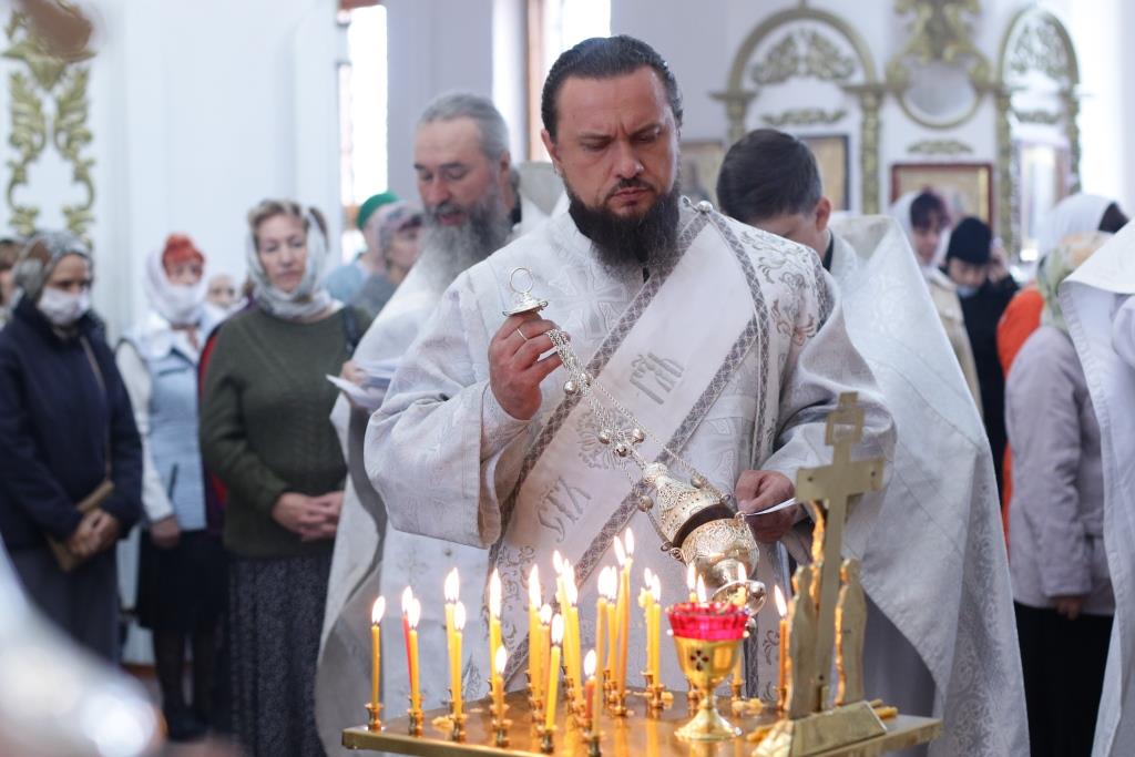 За Литургией и панихидой молились насельники Свято-Троицкой обители, сотрудники епархиальных отделов, прихожане кафедрального собора. Песнопения Троицкой родительской субботы исполнял хор Андреевского собора под управлением Н. Романцовой. Перед причастием мирян проповедовал священник Константин Дьяков.