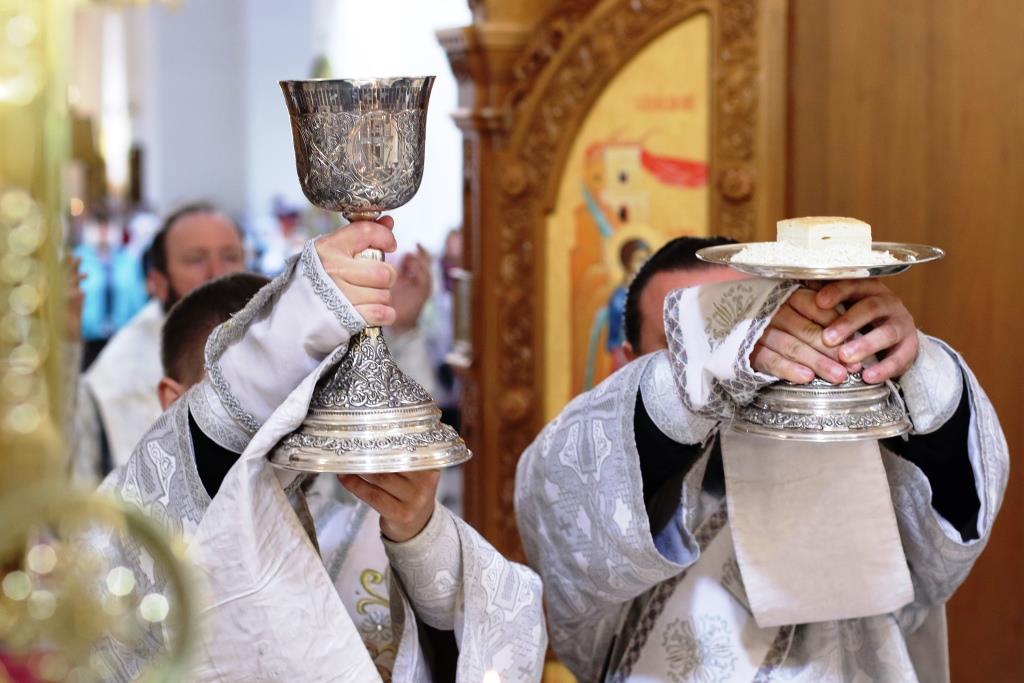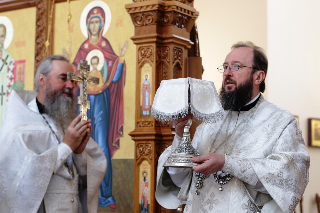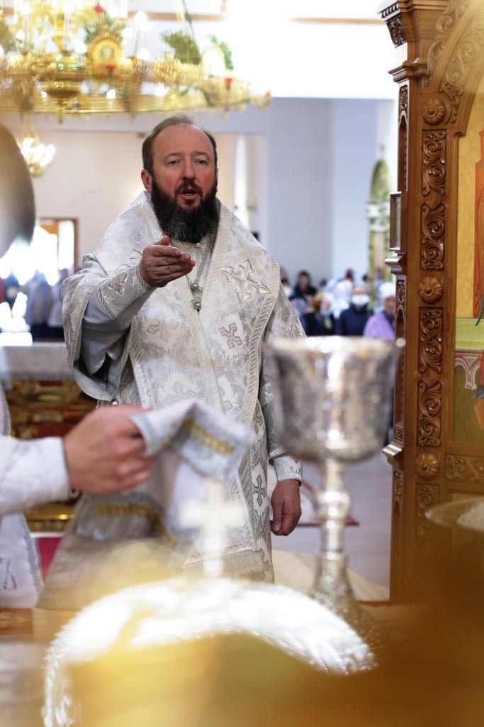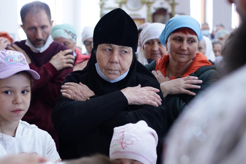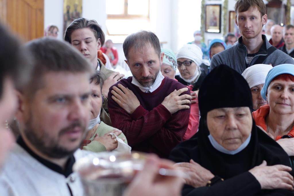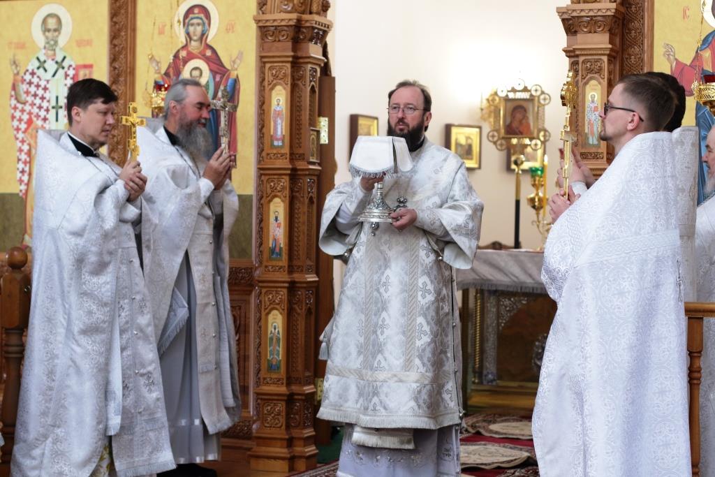 За Литургией и панихидой молились насельники Свято-Троицкой обители, сотрудники епархиальных отделов, прихожане кафедрального собора. Песнопения Троицкой родительской субботы исполнял хор Андреевского собора под управлением Н. Романцовой. Перед причастием мирян проповедовал священник Константин Дьяков.