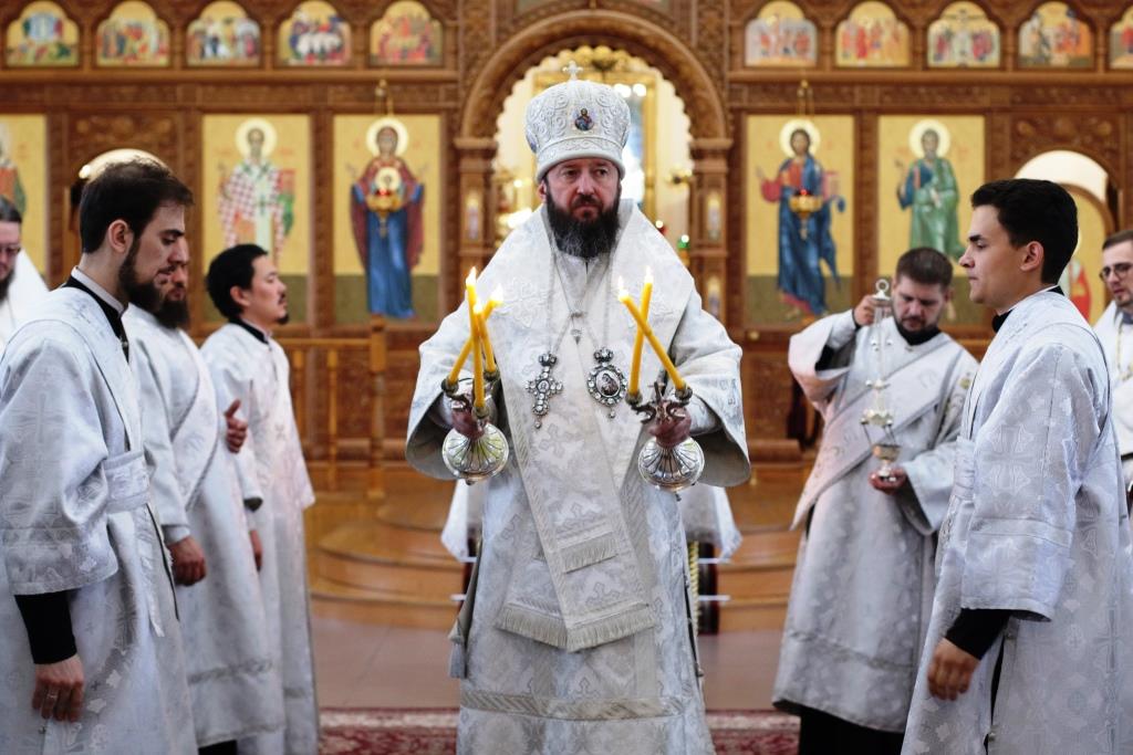 В завершение Божественной Литургии Преосвященнейший Архипастырь обратился к духовенству и народу Божиему со словами проповеди.